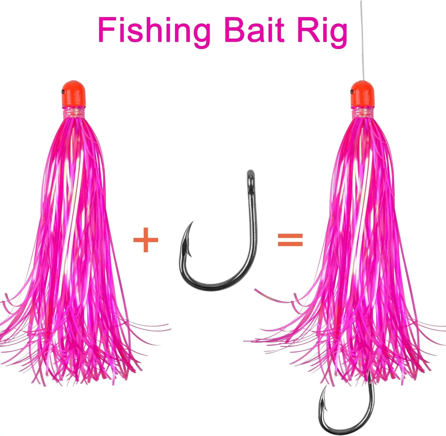 3. Las faldas de pesca Mylar funcionan bien frente a cualquier cebo aparejado, Ballyhoo, Mullet, Lalamar o pesca voladora. Especialmente ideal para aparejos de pesca con señuelos de pesca Sea Bass Salmón con línea de flash deslizante DIY.