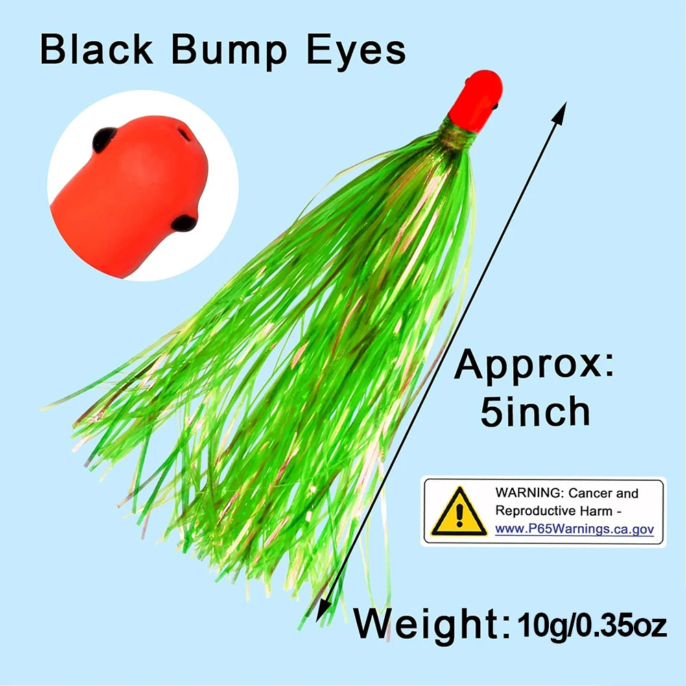 2.Mylar Flash Teaser Tail tiene ojos negros, cabeza de plantilla con peso, adecuada para señuelos de pesca con curricán de agua salada.