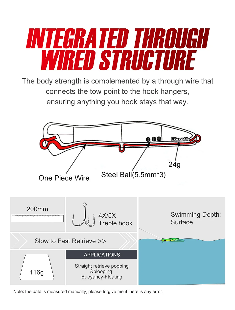 Noeby-señuelo de pesca Popper de gran juego, 20cm, 116g, Topwater Wobbler, cebo duro Artificial, anzuelos 4/5X para mar pesado, señuelo de pesca de atún GT