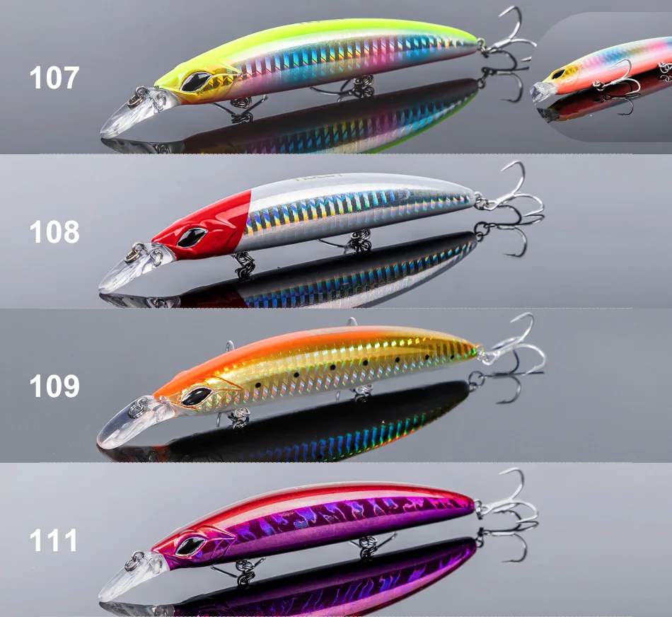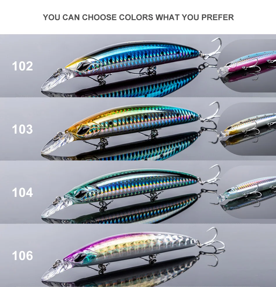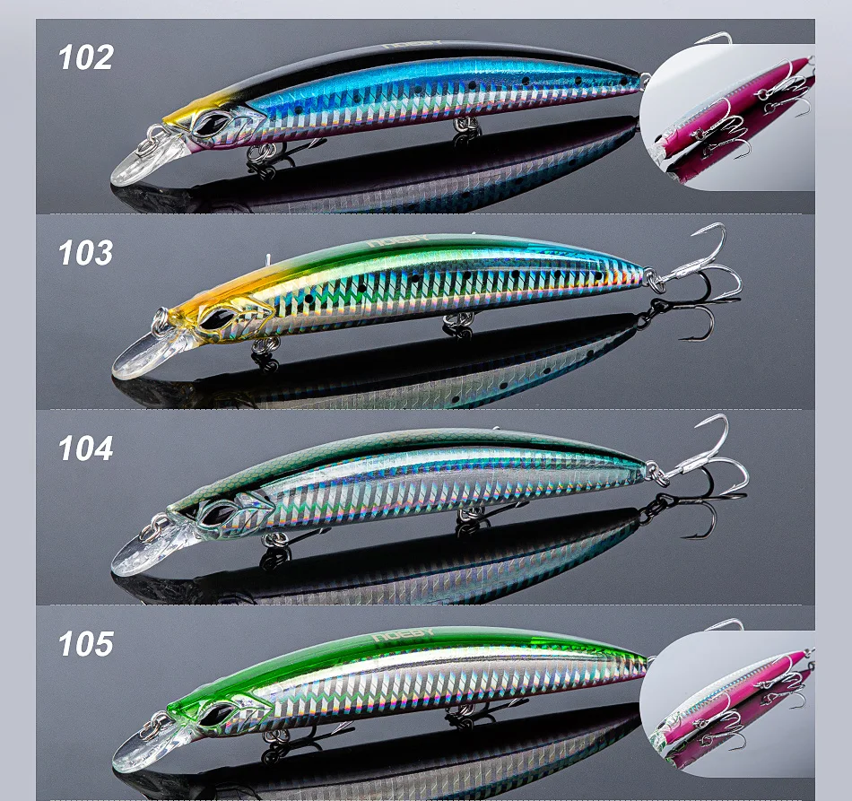 señuelos muy precioso en la hora de la pesca tiene unnmado muy realista el envío fue un poco lento pero llegaron en perfecto estado.