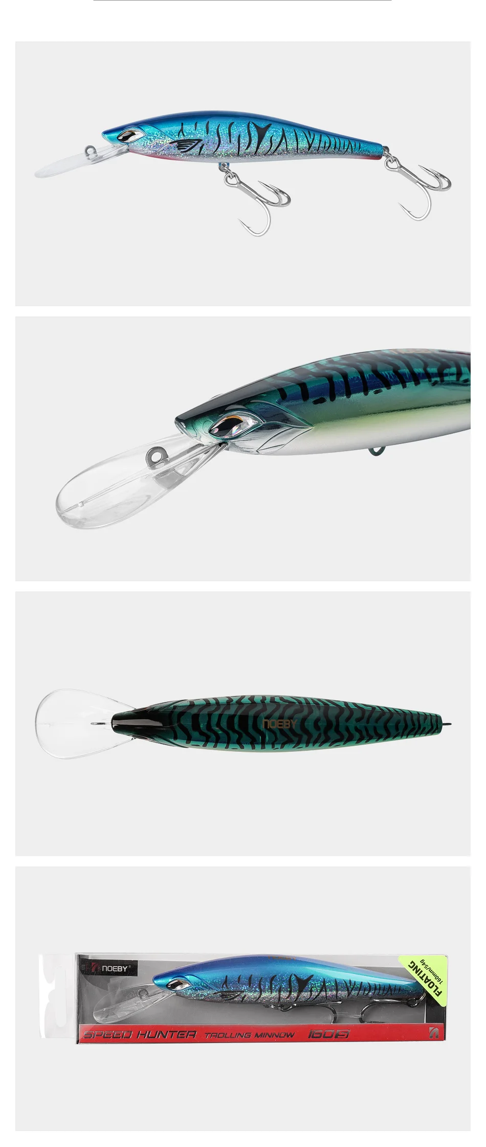 Señuelo de pesca NOEBY Speed Hunter Trolling Minnow, 160mm, 54g, gran juego de pesca atún GT, juego en alta mar, señuelos duros artificiales de agua salada