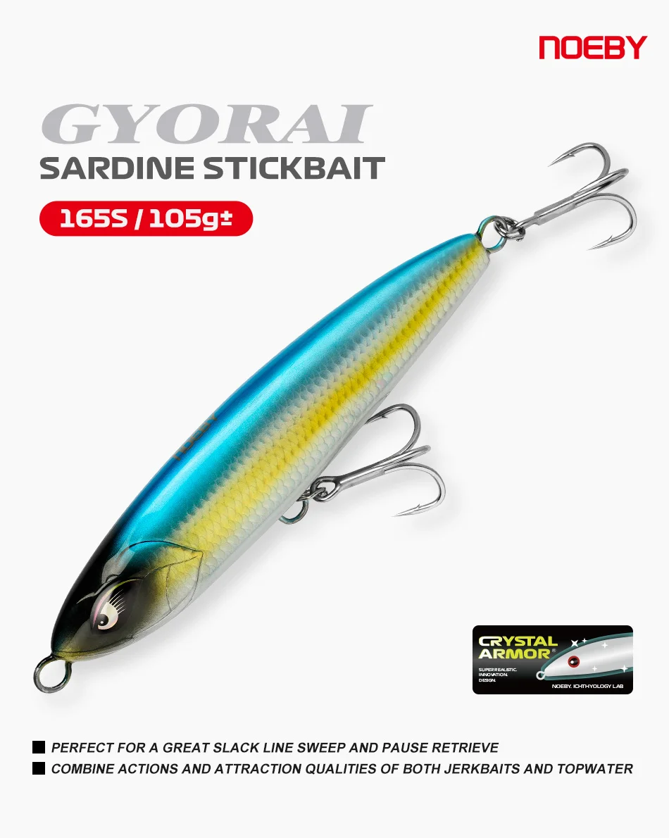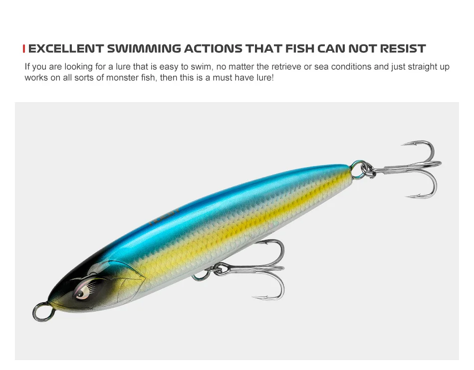 Noeby-Stickbait Fishing Lure 165mm 105g Sinking Pencil Wobbler, Reinforced Artificial Hard Bait, Sea Tuna GT Fishing Lures
