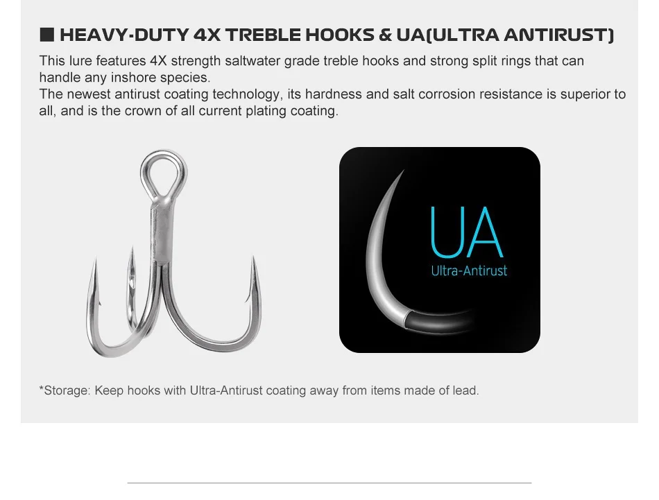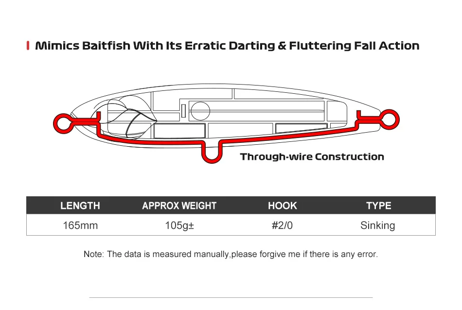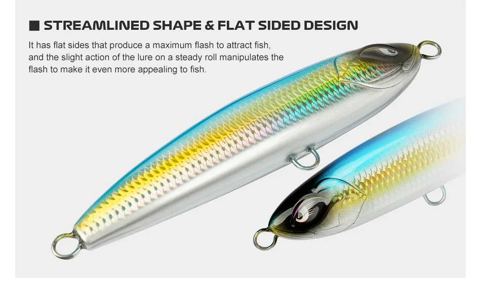 During sinking phase, the lure has an enticing wobbling action and sinks with a little shimmer as it falls naturally mimicking a dying baitfish, often getting bites as it goes down through the water column.