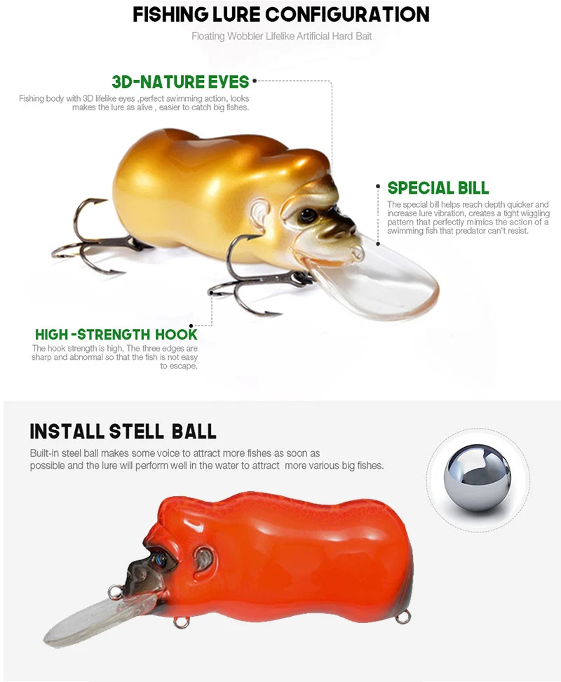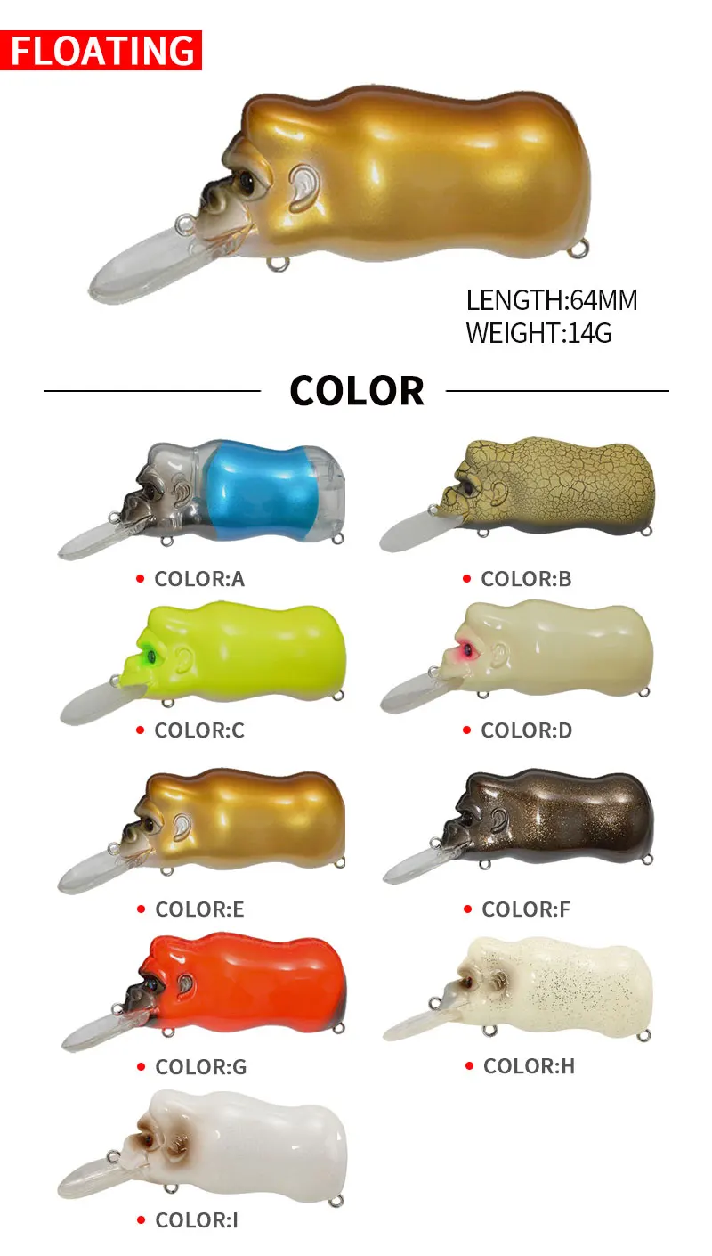 Señuelo de pesca de orangután, superficie superior del agua, cebo Artificial, Wobblers, Crankbait flotante de plástico para equipo de perca de lubina, 64mm, 14g