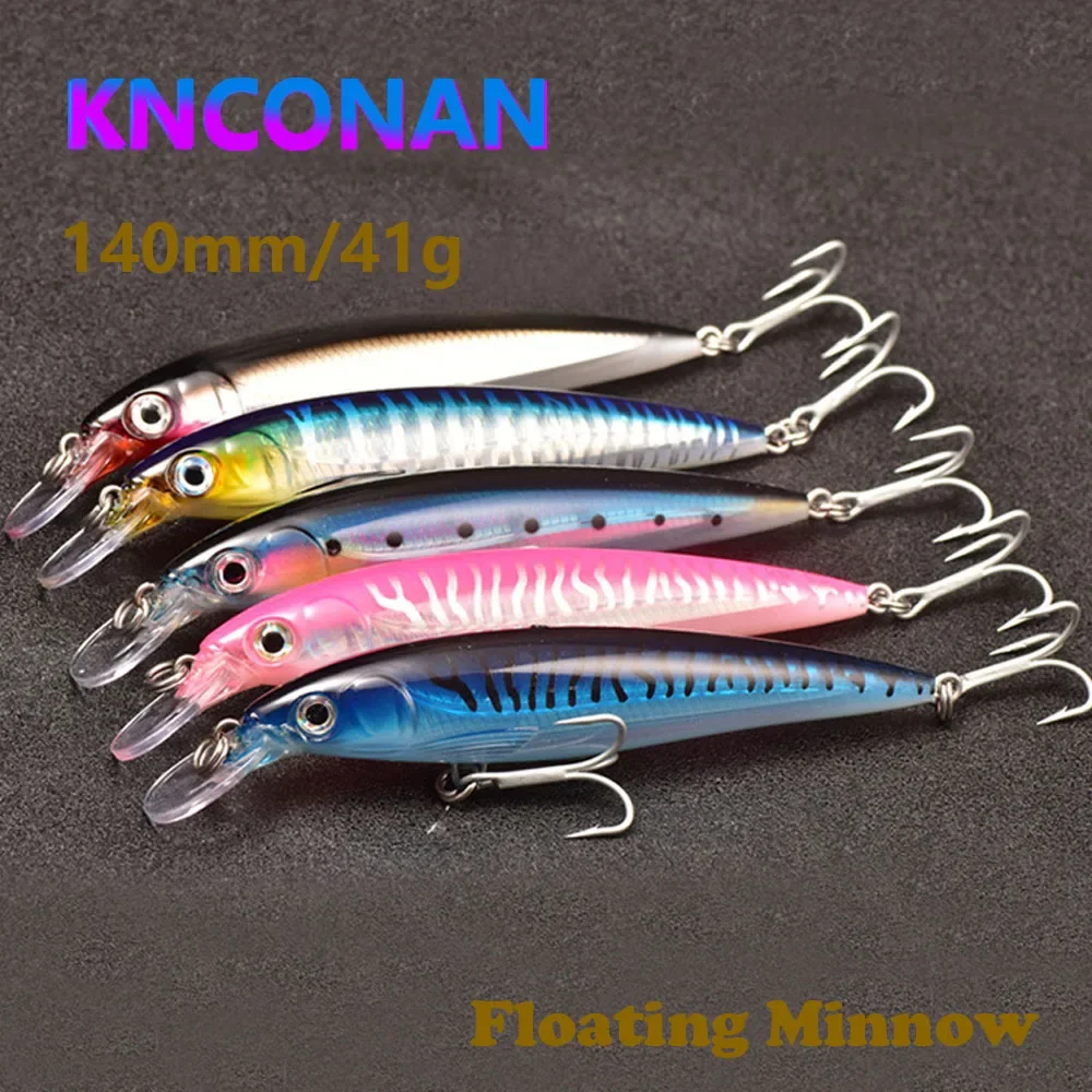 Señuelo de pesca oscilante, 140mm, 41g, gran pececillo flotante, cebos duros artificiales, lubina para lubina, perca, Lucio, trucha