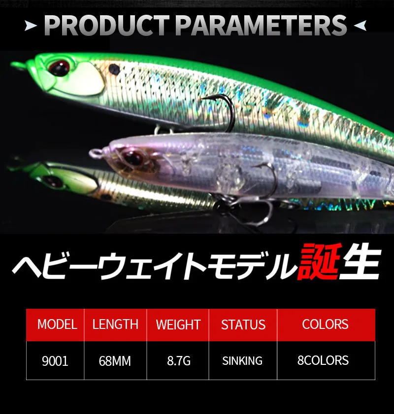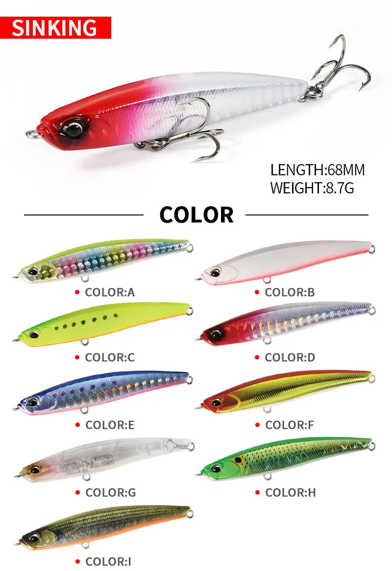 Lápiz de gravedad hundido 68mm 8,7G señuelo de pesca agua salada sin labios Minnow Wobbler cebo de plástico duro aparejos de pesca