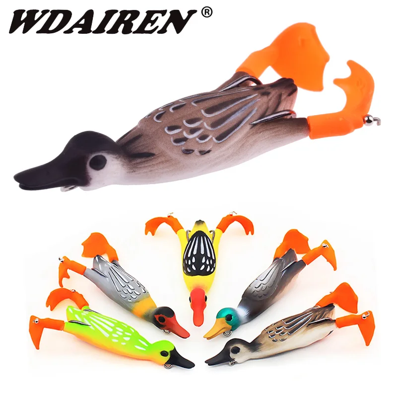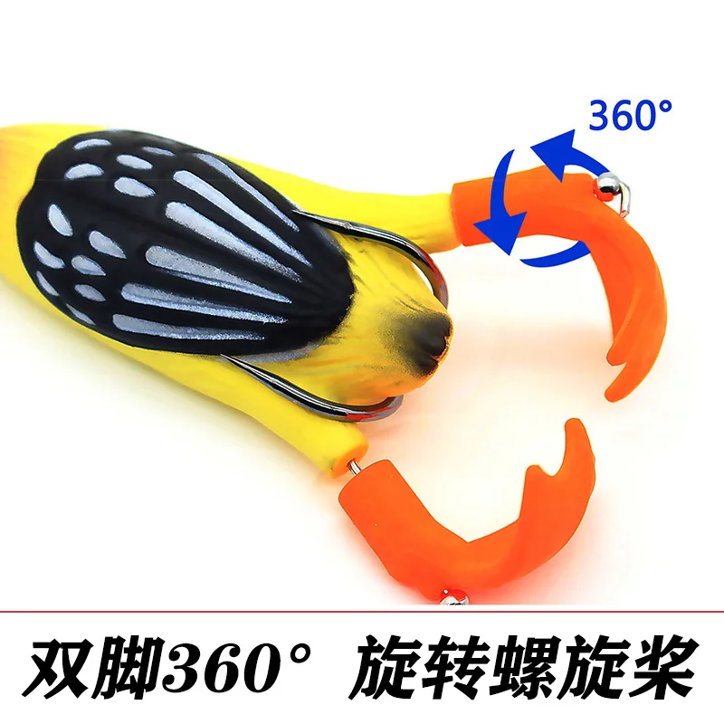 1 piezas de hélice flipper duck pesca señuelo Ducking pesca Rana señuelo 9,5 cm 12g cebo Artificial Duckling ojos 3D día cebos lubina