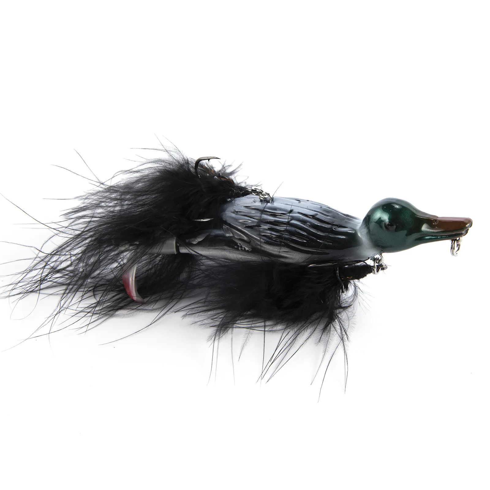 5. Los ganchos de plumas añaden una acción de natación deslizante para hacer que este señuelo sea exactamente como un pato nadando bajo el agua. La pluma también oculta los ganchos para aumentar la tasa de mordida.