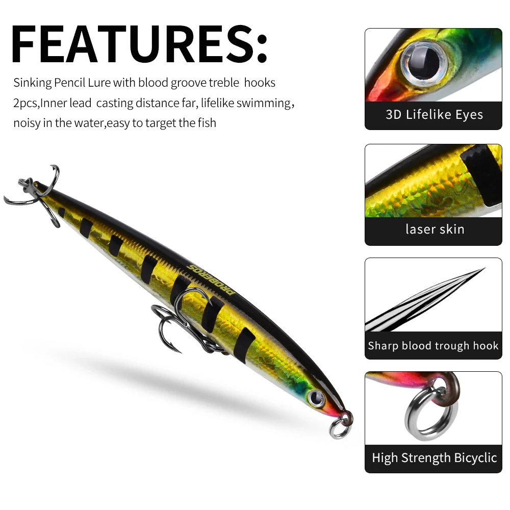 Señuelo de pesca de pececillo biónico, cebo duro para pesca en agua salada, diseño realista para mayor tasa de captura, 5 colores, 5,20 pulgadas/13,2g, 1 ud.