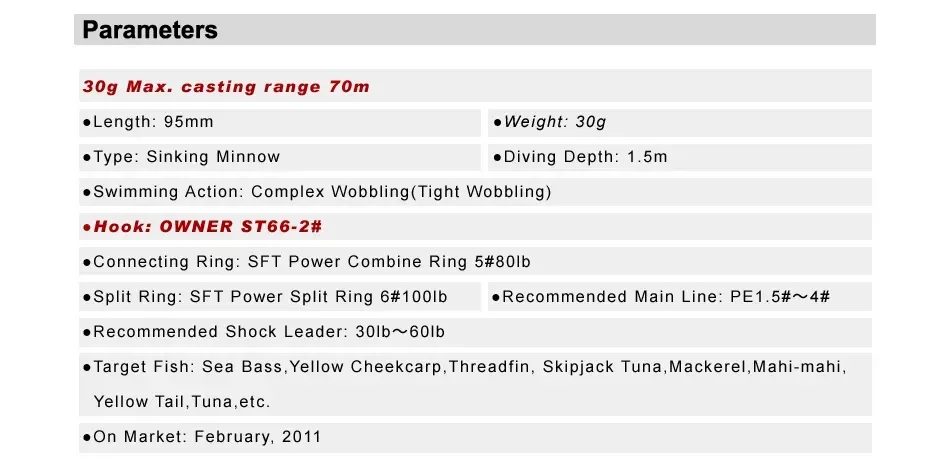Señuelo de pesca de pececillo, cebo duro, Crankbait, hundimiento, 95MM, 30G