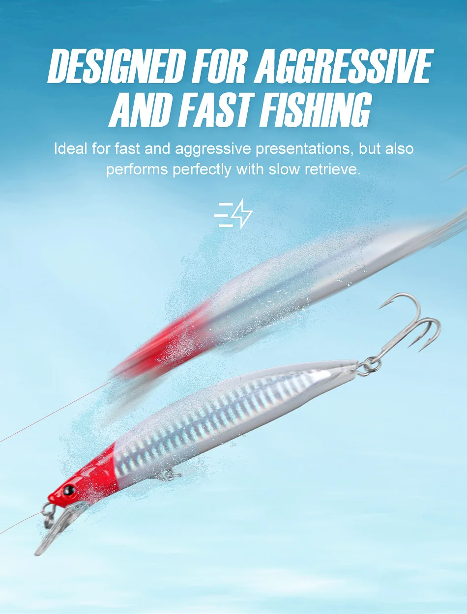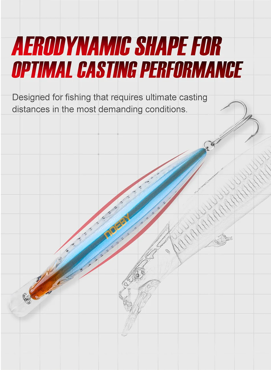 Señuelo de pesca de pececillo flotante NOEBY, 120mm, 22g, 135mm, 28g, cebos duros artificiales 9050, Wobblers de fundición larga, Jerkbaits, aparejos de pesca