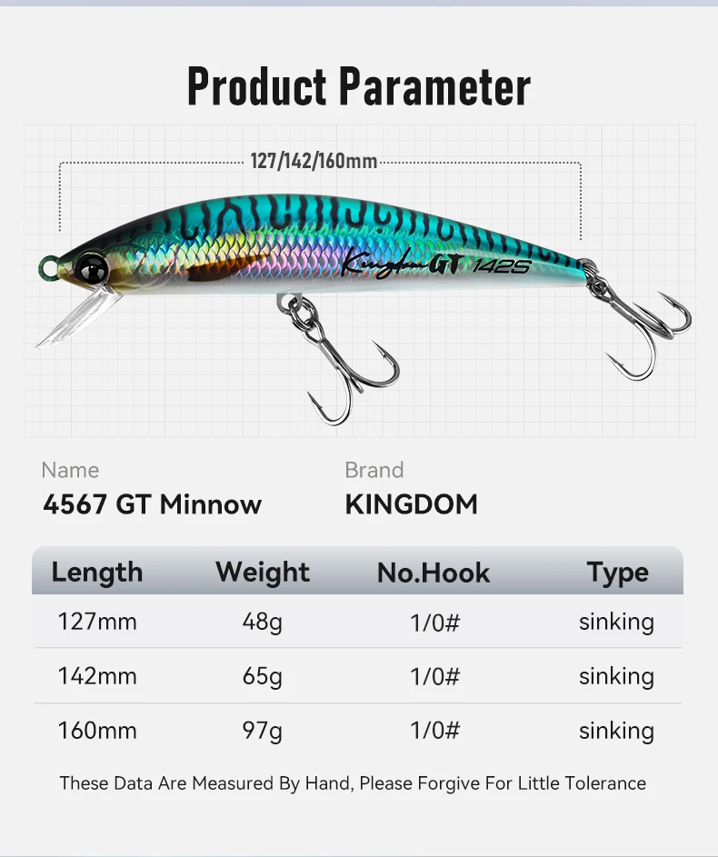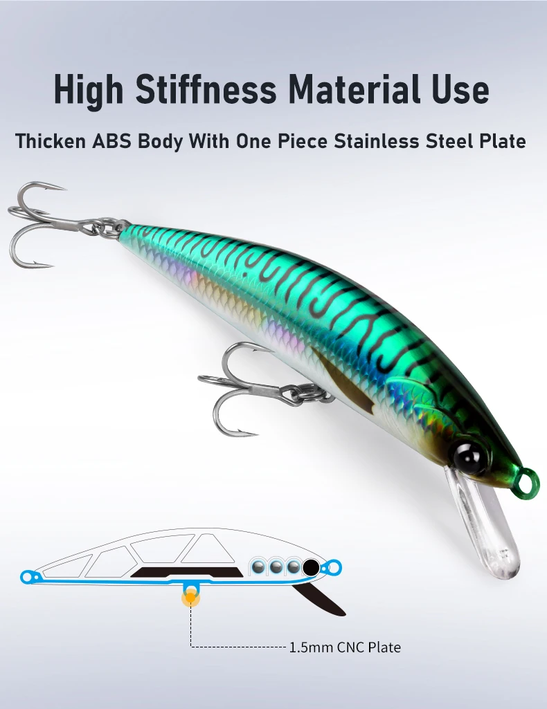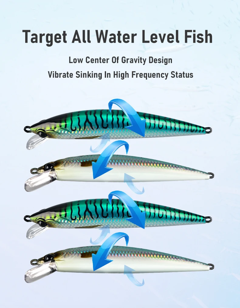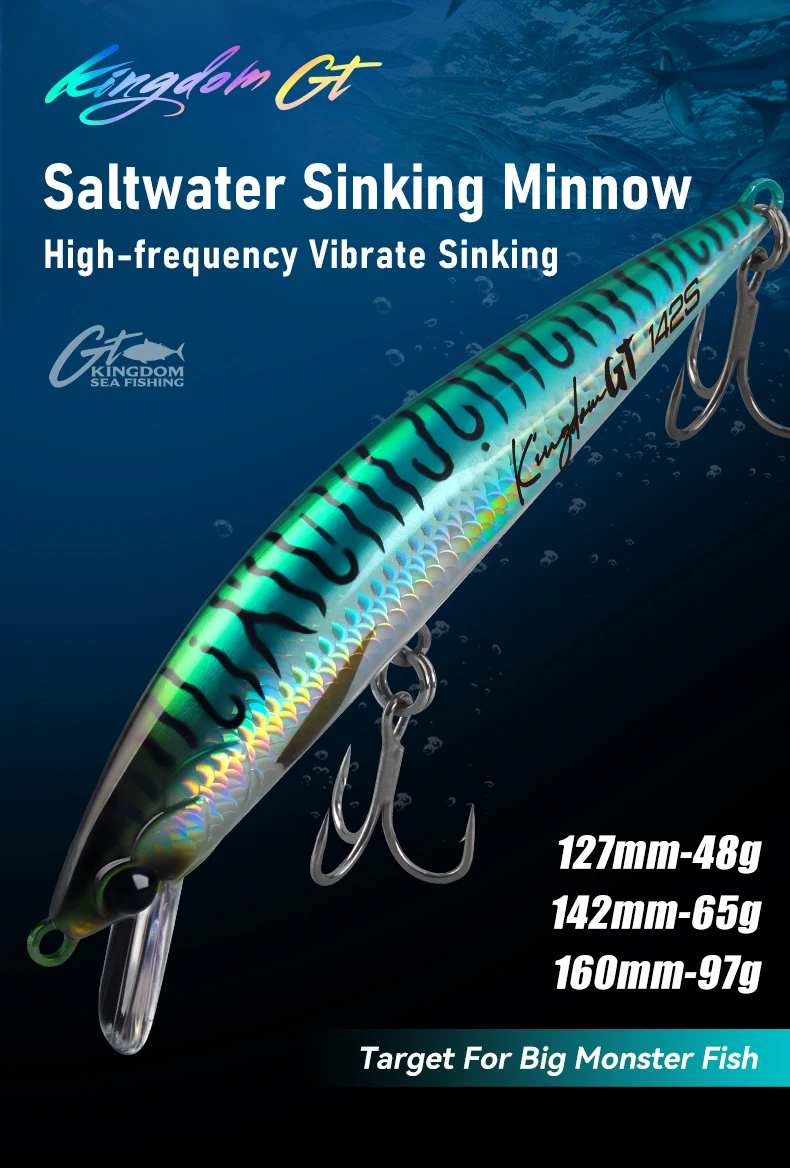 Reino señuelo de pesca de agua salada pececillo hundido 48/65/97g 127/142/160mm Minnow pesado pesca cebo Artificial agua salada señuelo de lubina