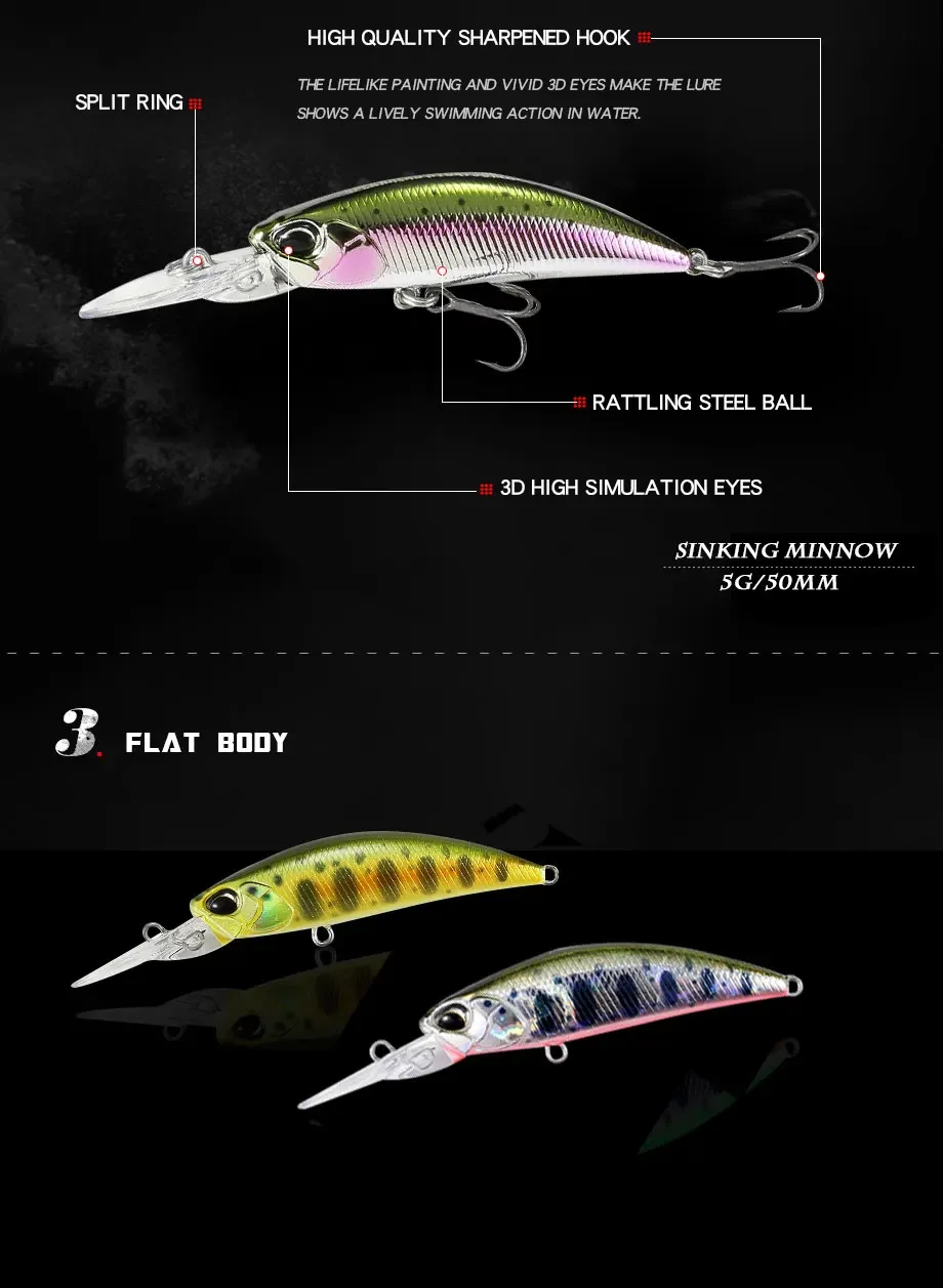 Señuelo de Pesca de Hundimiento, Cebo Duro M059 de 50mm y 5g para Peche Pike, Carpa, Isca, Wobblers Artificiales