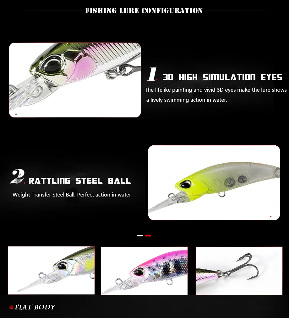 ACCIÓN PERFECTA EN EL AGUA VIENE APARECIDO CON ANZUELOS Y LISTO PARA PESCAR VARIOS COLORES PARA ELEGIR O SE PUEDE PERSONALIZAR OJOS DE ALTA SIMULACIÓN 3D/ANILLO DIVIDIDO DE GANCHO AFILADO DE ALTA CALIDAD/CUERPO PLANO/BOLA