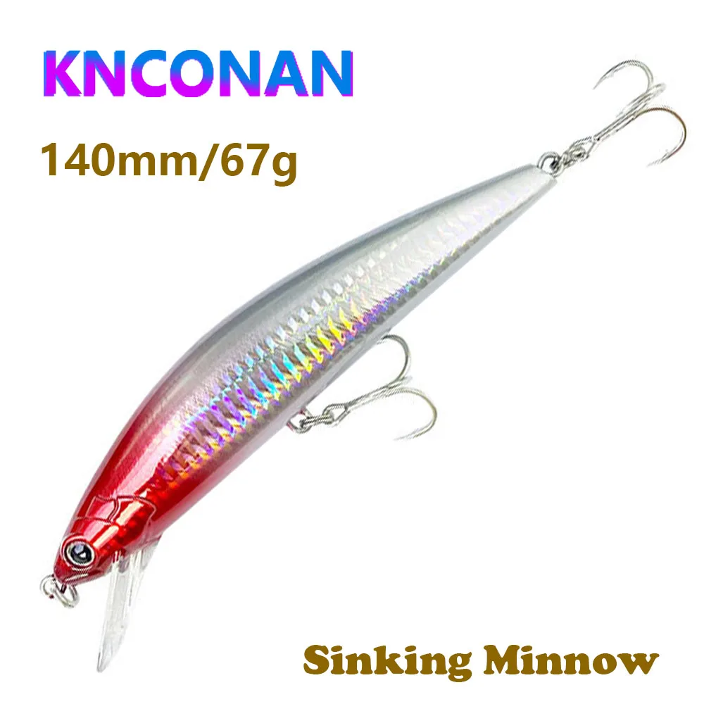 Señuelo de pesca de pececillo hundido, 140mm, 67G, cebo de hundimiento de mar pesado, pesca de agua salada, lubina, Jerkbait, señuelo giratorio Artificial, 1 ud.