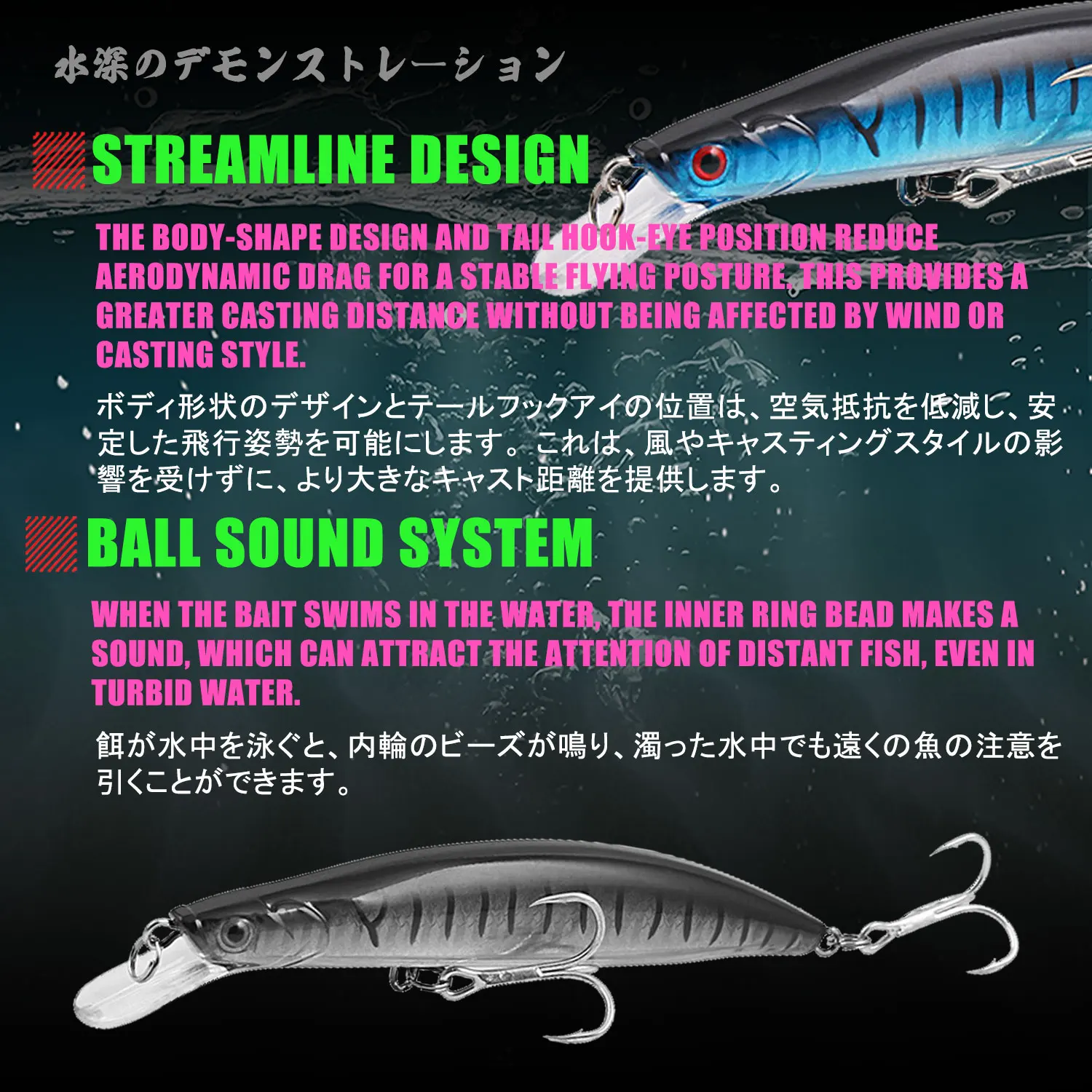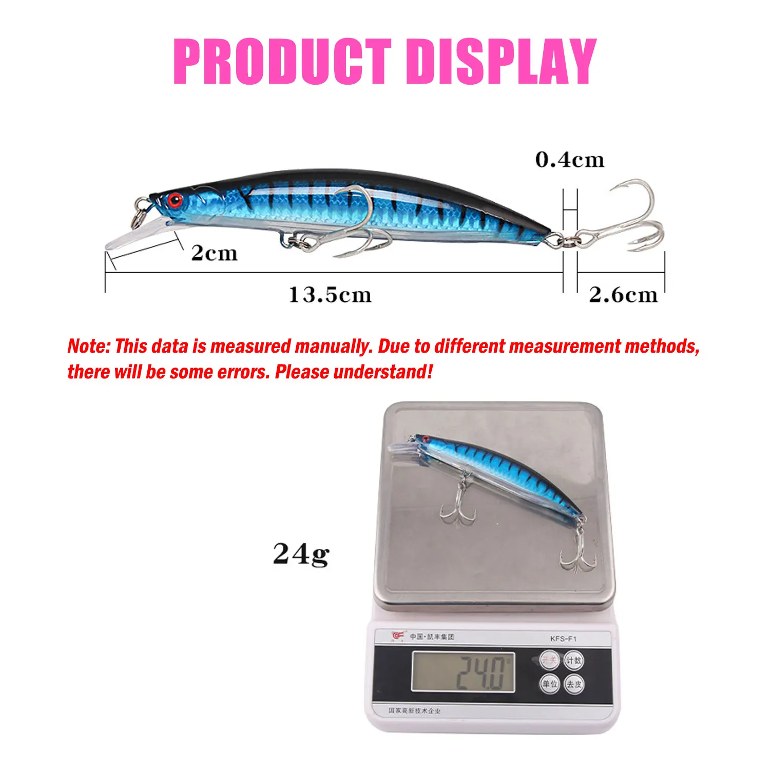 Señuelo de pesca Minnow hundido, 24g, 13,5cm, Isca Artificial Wobblers, cebos duros, aparejos Peche En Mer, Trolling para pez mandarín Leurre