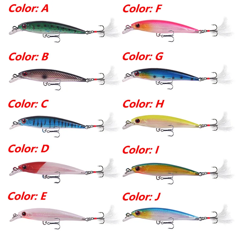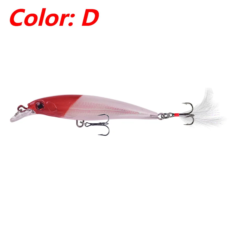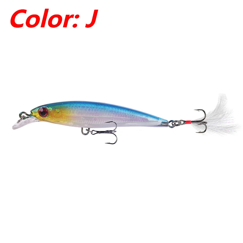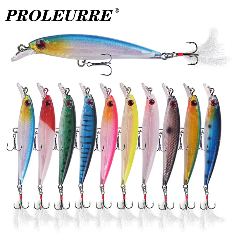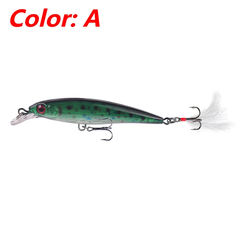 1 Uds. Señuelo de Pesca Minnow hundido, 9cm, 7g, Wobblers de curricán, cebos duros artificiales de plástico con ganchos de plumas, Pesca