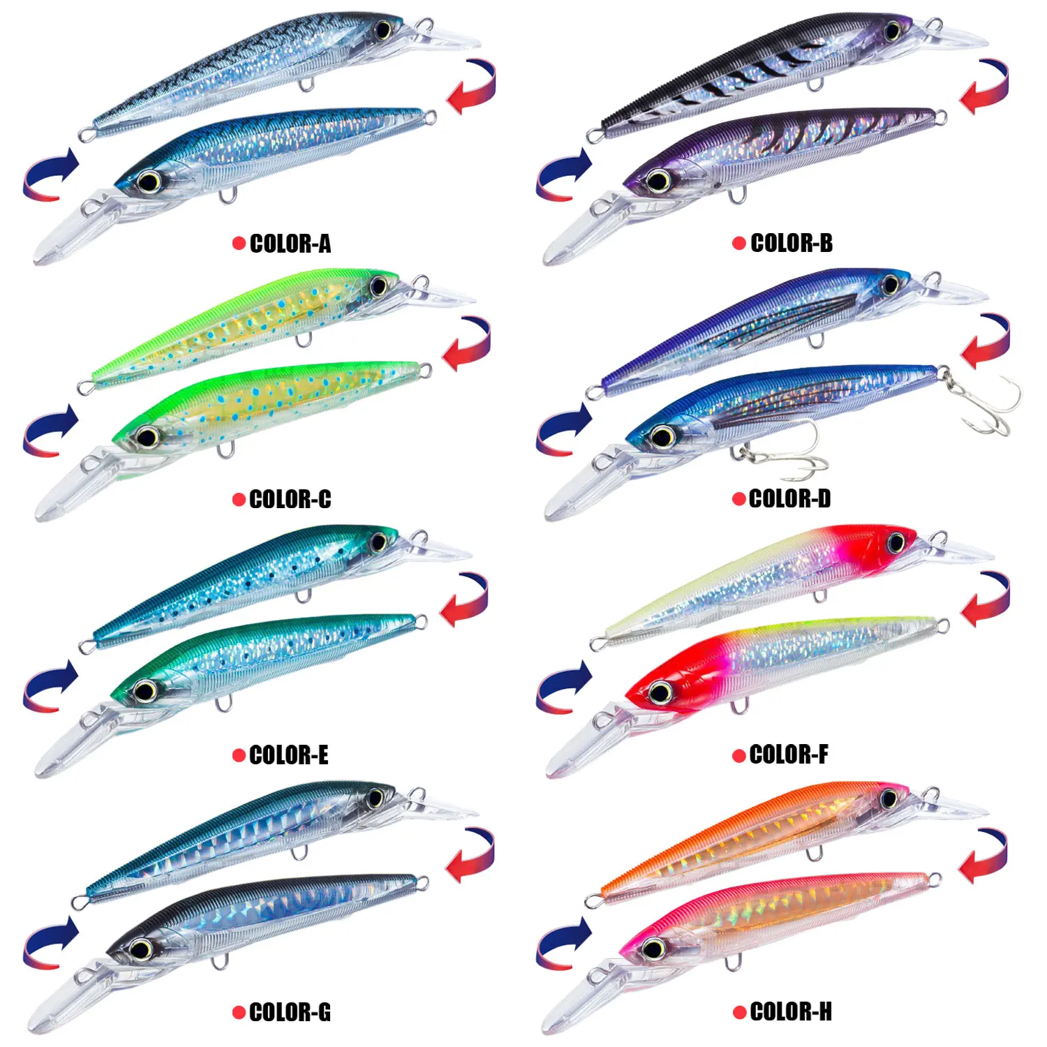 Solo hay un cebo por artículo, y la tabla de colores es solo para fines de exhibición