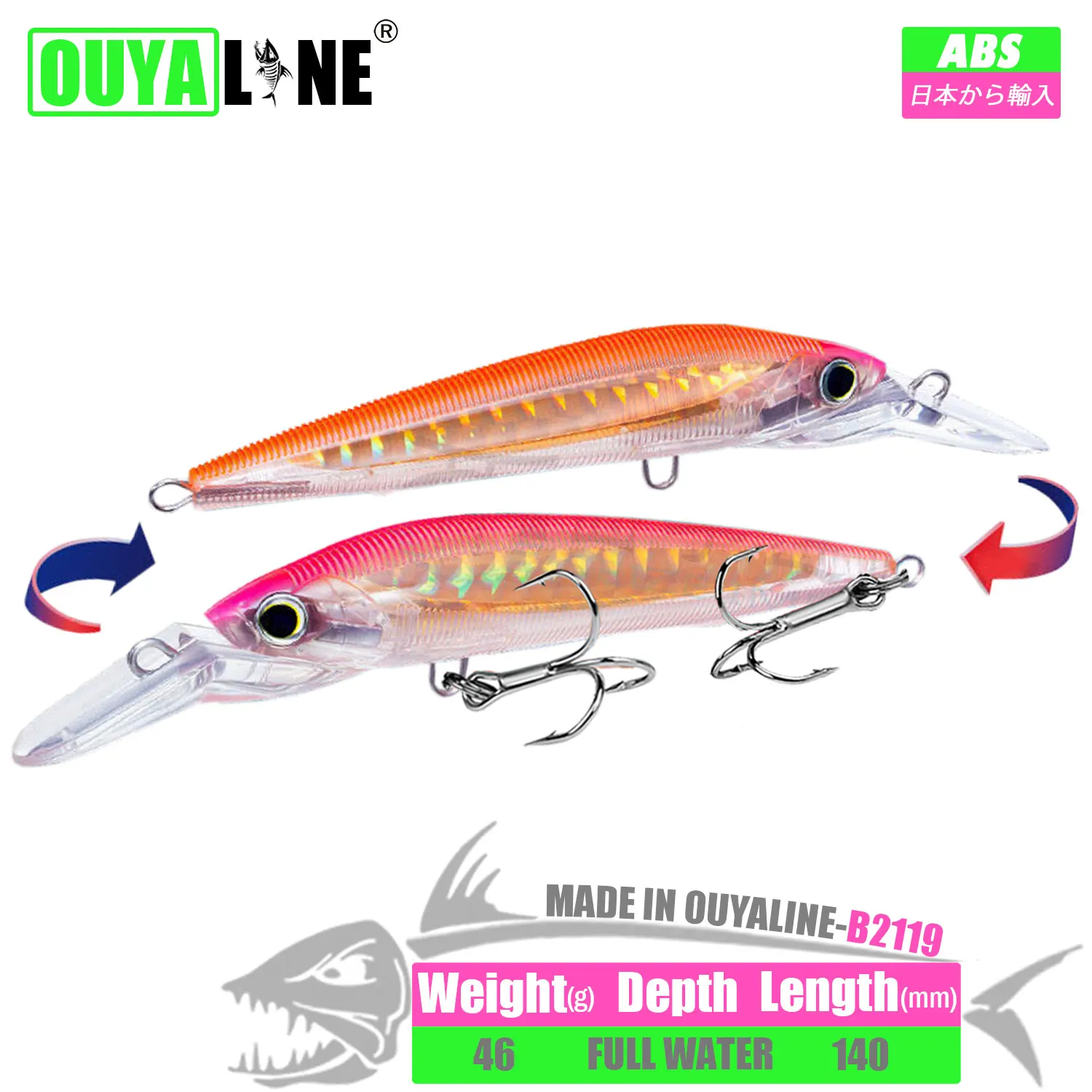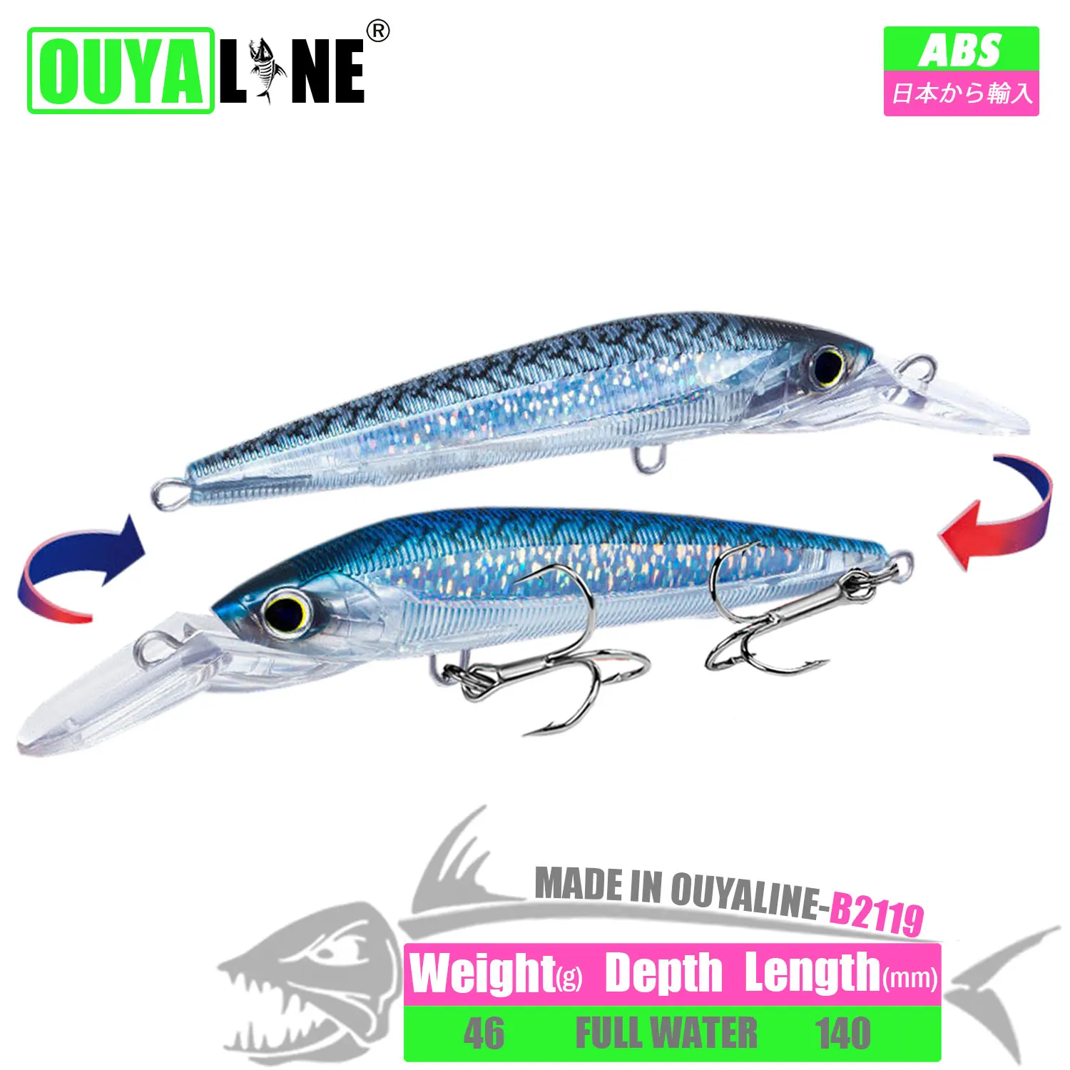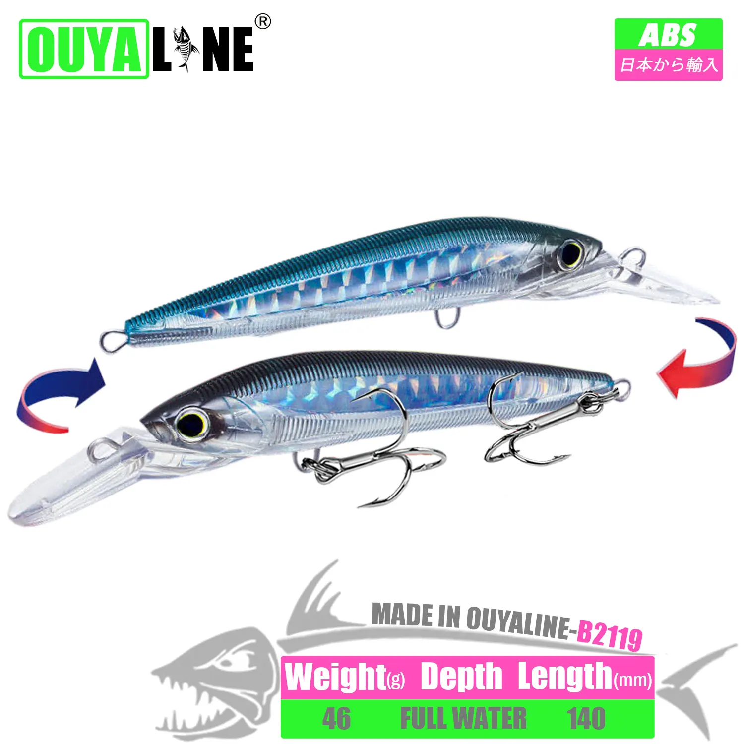 Señuelo de Pesca de pececillo hundido 46g 140mm cebo duro Artificial aparejos de Pesca Accesorios Mar para lubina pez mandarín Leurre