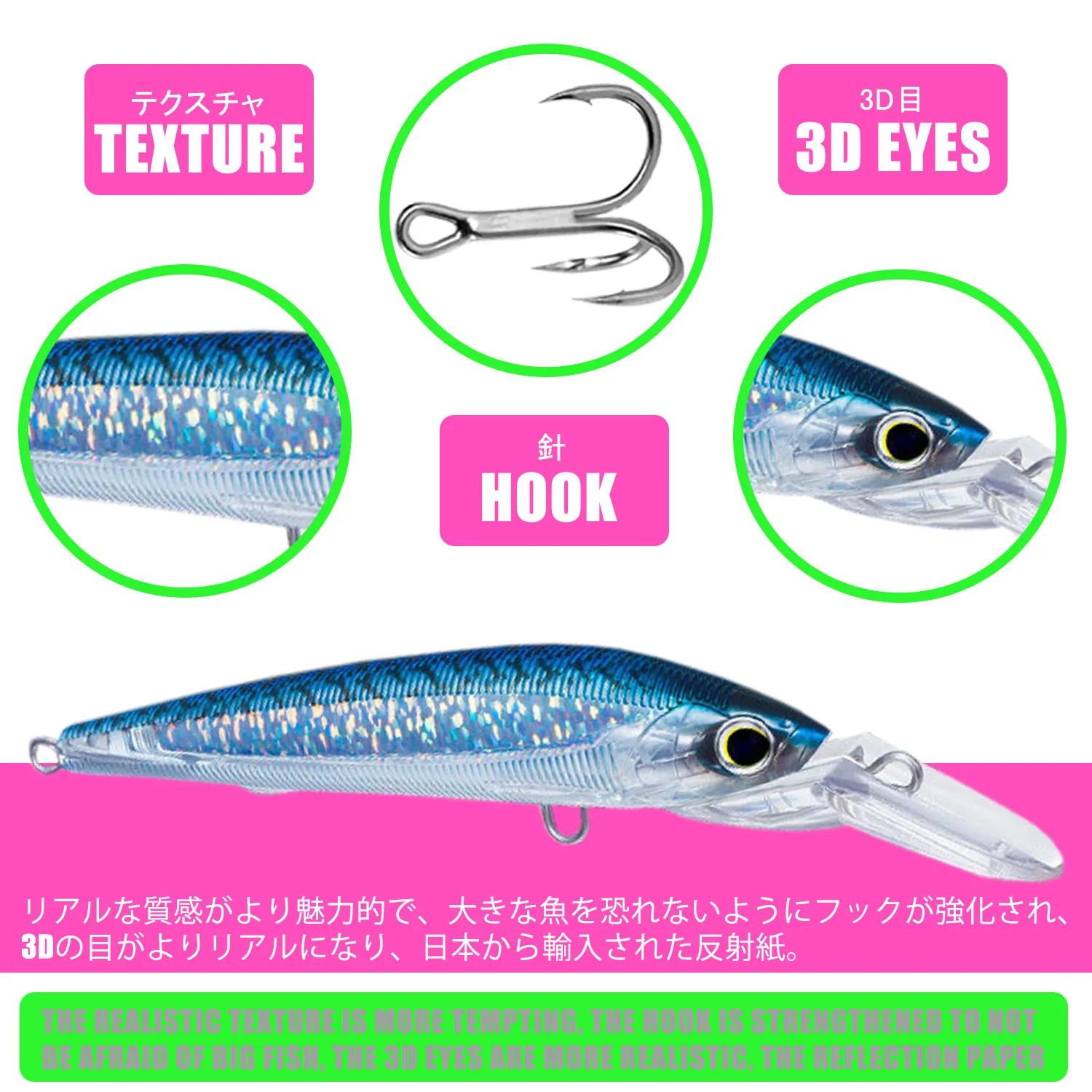 2. Piel de pez de simulación (láser): el diseño de piel de pez de simulación la hace más atractiva para los peces grandes.