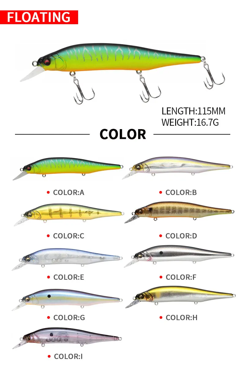 1 señuelo de pesca de pececillo que se hunde, 115mm, 16,7G, Wobbler, Pesca Isca, trucha Artificial, carpa, pesca, pececillo, cebo de Pesca 9129