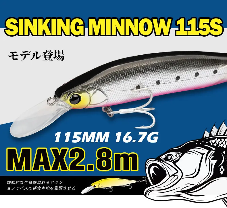 1 Uds. Señuelo de pesca Minnow hundido 115mm 16,7g Wobbler Pesca Isca Artificial trucha carpa pesca Minnow cebo de pesca 9129