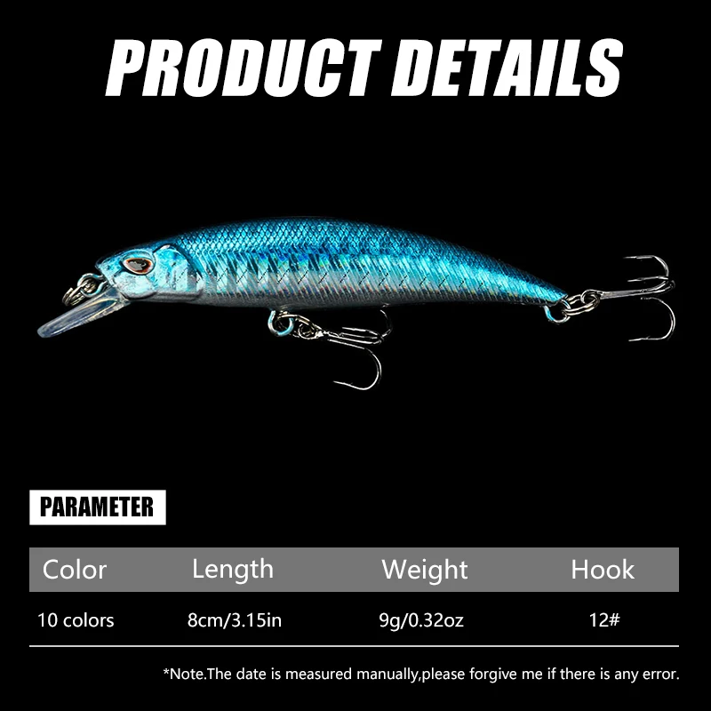 Señuelo de pesca Minnow hundido, Lucio, 8cm, 9g, cebo para perca, Wobblers, cebos duros artificiales, Peche en mer, productos de primavera para pesca, buceo, 0-1,5 m