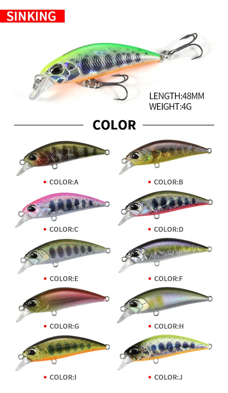 Señuelo de Pesca de pececillo hundido con ojos 3D, 48mm, 4g, Wobbler, cebo duro de plástico Artificial para aparejos de Pesca de mar