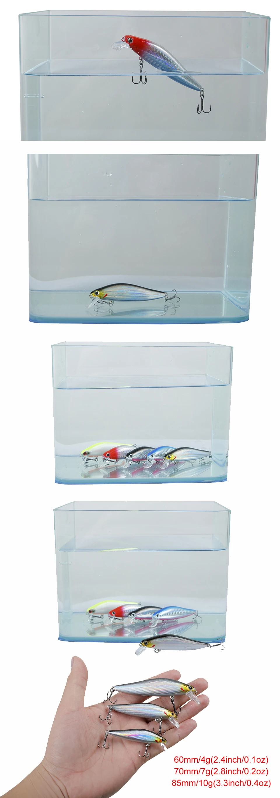Señuelo de pesca de pececillo de hundimiento lento de 60/70/85mm de largo, 4/7/10/14/18g, capa de natación completa, Wobbler Artificial, cebo duro, Lago de Río