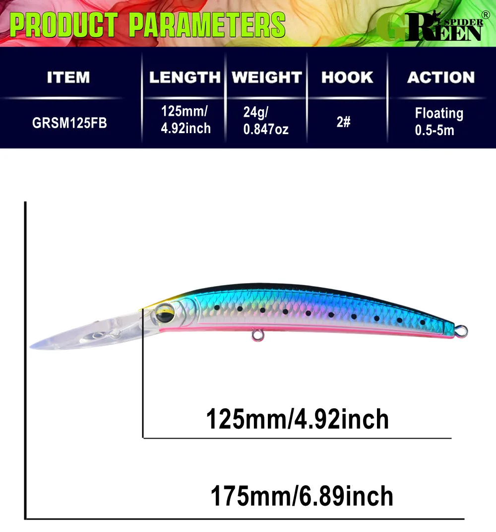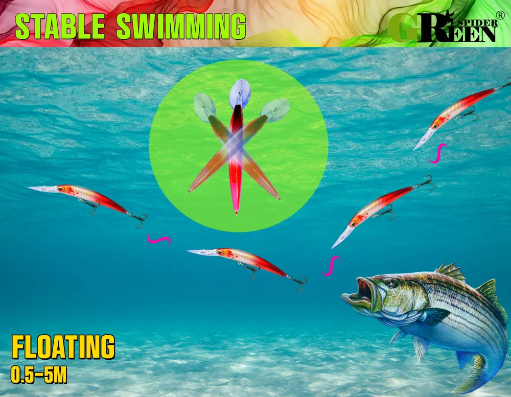 Señuelo de pesca de pececillo de lengua larga GRS, cebo duro Artificial para curricán de lubina, 12,5 cm, 24g, Crankbait Wobblers para curricán Jerkbait