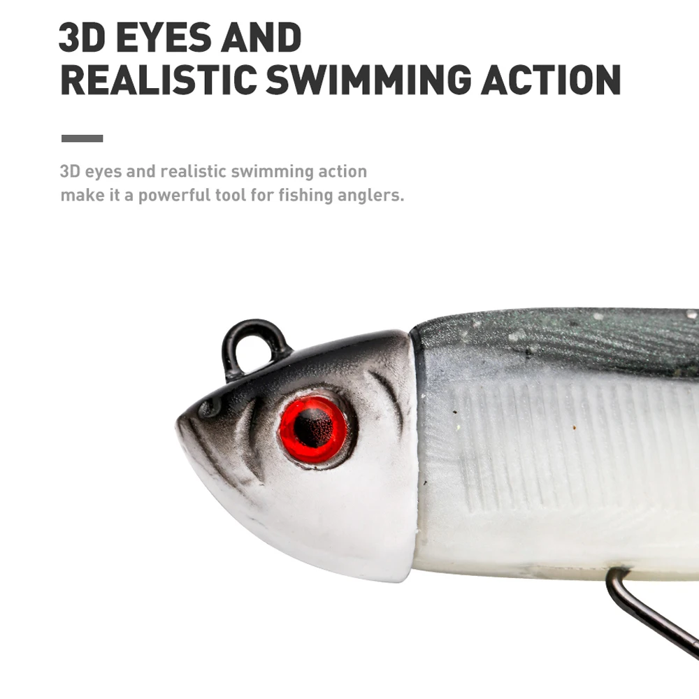 Señuelo de pesca Minnow negro, 90mm, 15g/30g, cebos de silicona con cabeza de Jig, señuelos blandos, gancho de manivela, Jigging, lubina, Lucio Zander Wobbler Swimbait