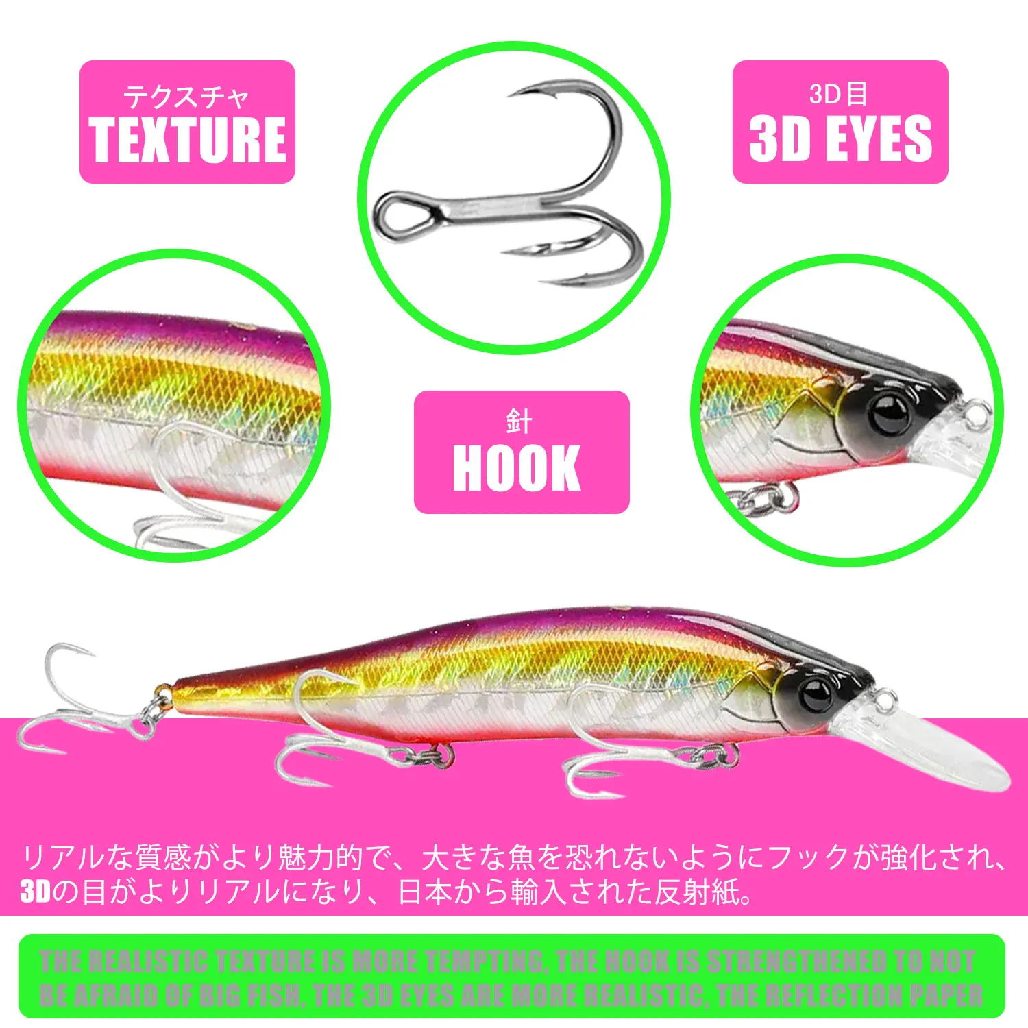 Señuelo de Pesca de pececillo hundido 16,5g 115mm de fundición larga cebos duros artificiales Wobblers aparejos de Pesca para lubina perca pez Leurre