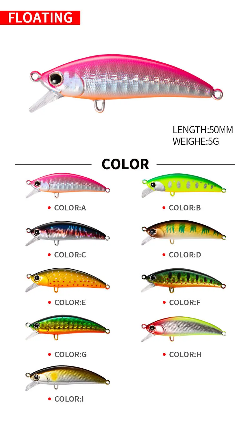 Señuelo de pesca de pececillo que se hunde, 50mm, 5g, cebos duros artificiales para trucha, Jerkbait, aparejos de corriente de fundición larga, 1 Uds.