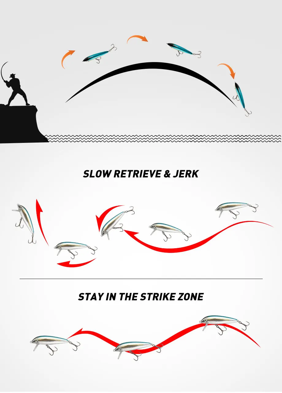 El señuelo duro para pececillos se puede aplicar a diversos entornos y objetivos anchos para peces depredadores, desde agua dulce hasta agua salada, como lagos, ríos, reservciones, estanques, pesca en roca oceánica, pesca en la playa, etc., y es adecuado para diversas especies de señuelos de pesca, como como Walleye Redfish Salmón Trota Bass, etc.