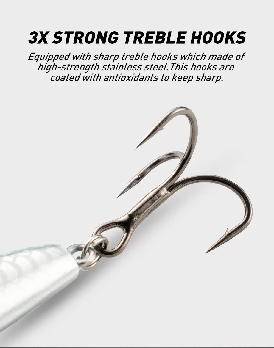 El señuelo duro que posee anzuelos triples dobles afilados y un revestimiento exquisito de colores brillantes se pueden usar muchas veces sin roturas ni corrosión.