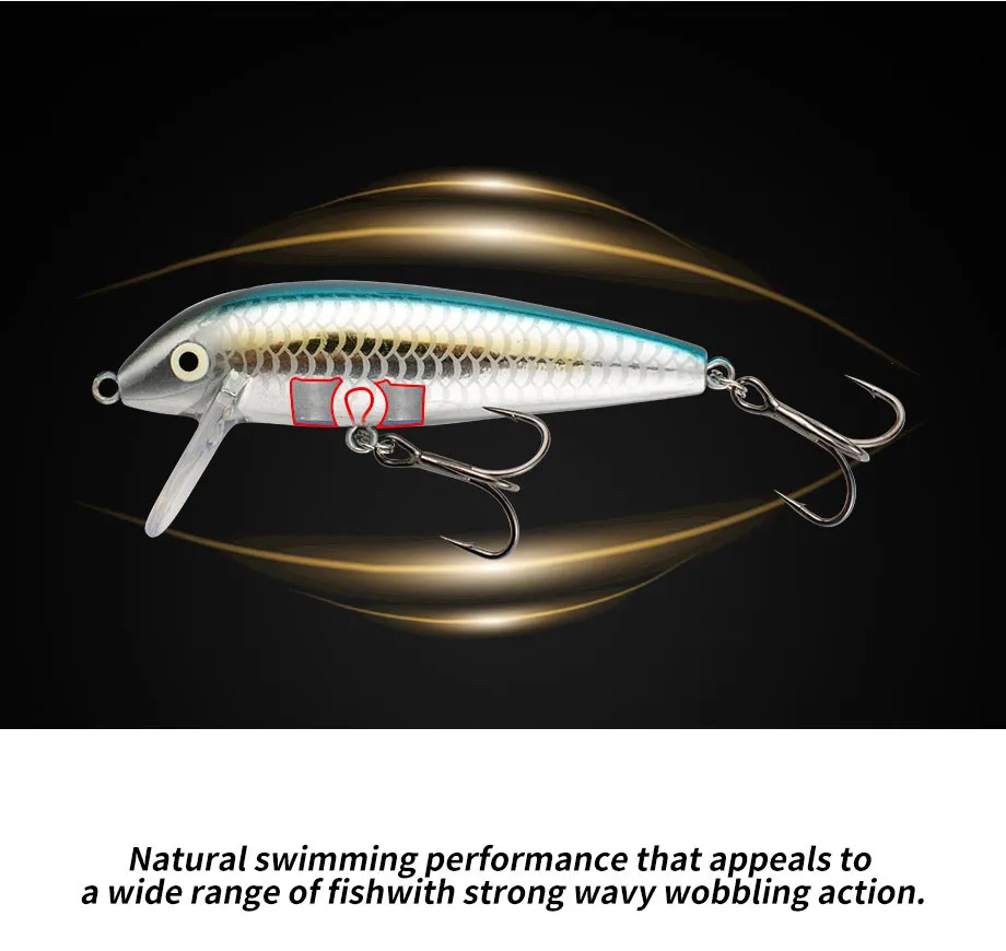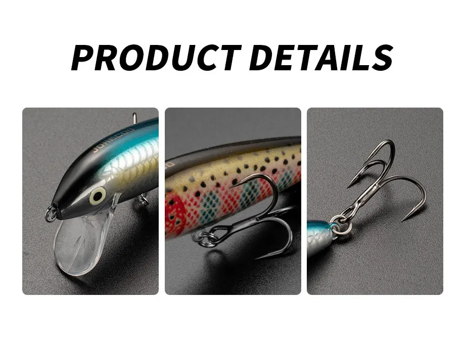 El señuelo hundido tiene un color brillante y un cebo crankbait súper realista con un cuerpo aerodinámico que garantiza que los señuelos de pesca de buceo tengan una postura de natación excepcional en el agua.
