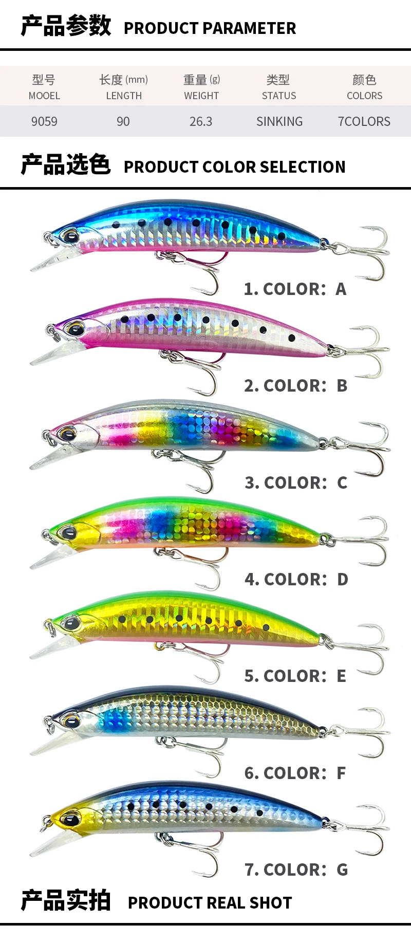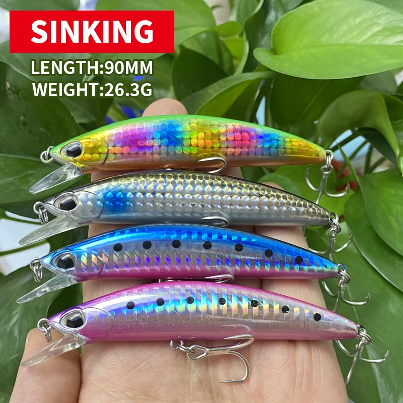 Señuelo de pesca de pececillo que se hunde, cebo Artificial de arrastre pesado, lubina de mar, Wobblers, Jerkbait, aparejos de pesca 9059, 90mm, 26g