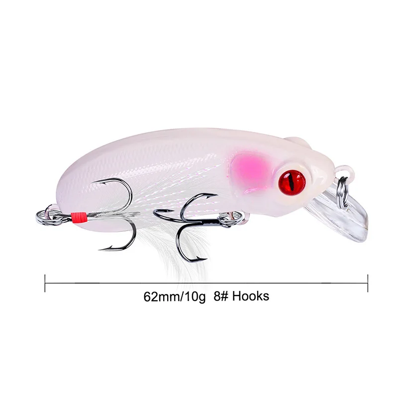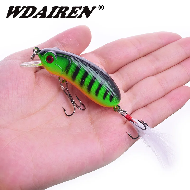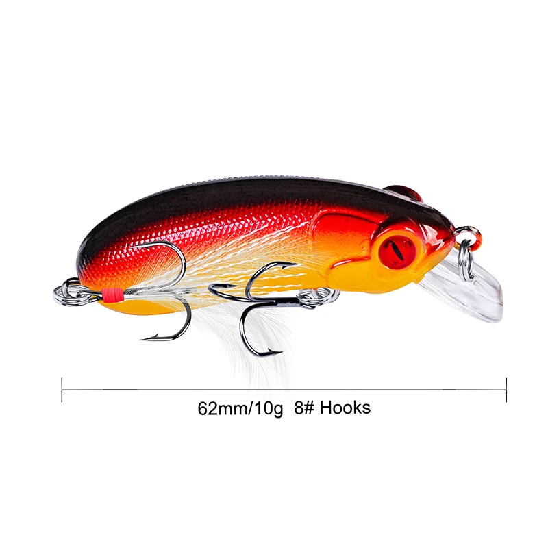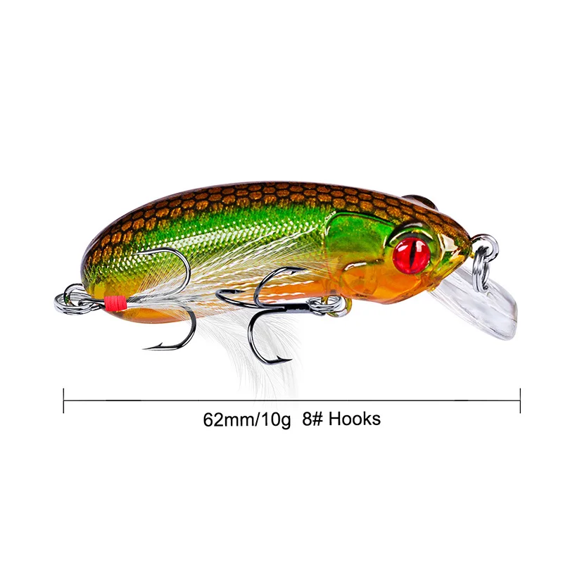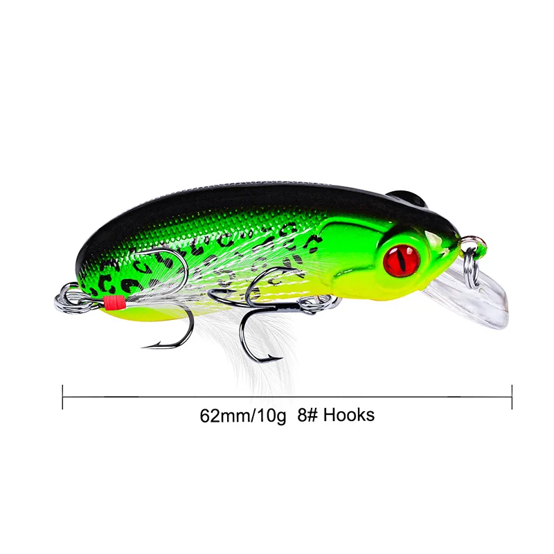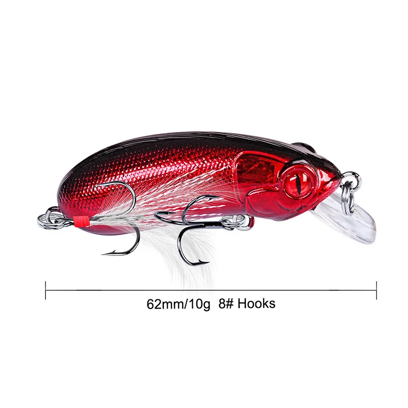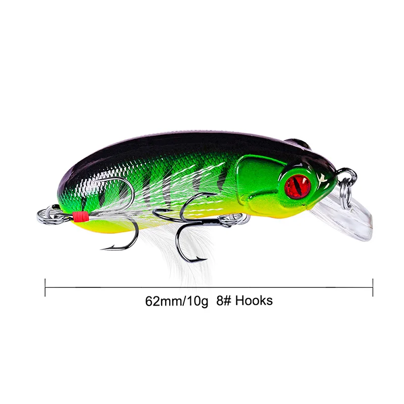1 pieza de señuelo de pesca Minnow que se hunde Wobblers 60mm 10g cebo duro Artificial con anzuelo triple pluma Lucio Isca Bass Crankbait aparejo