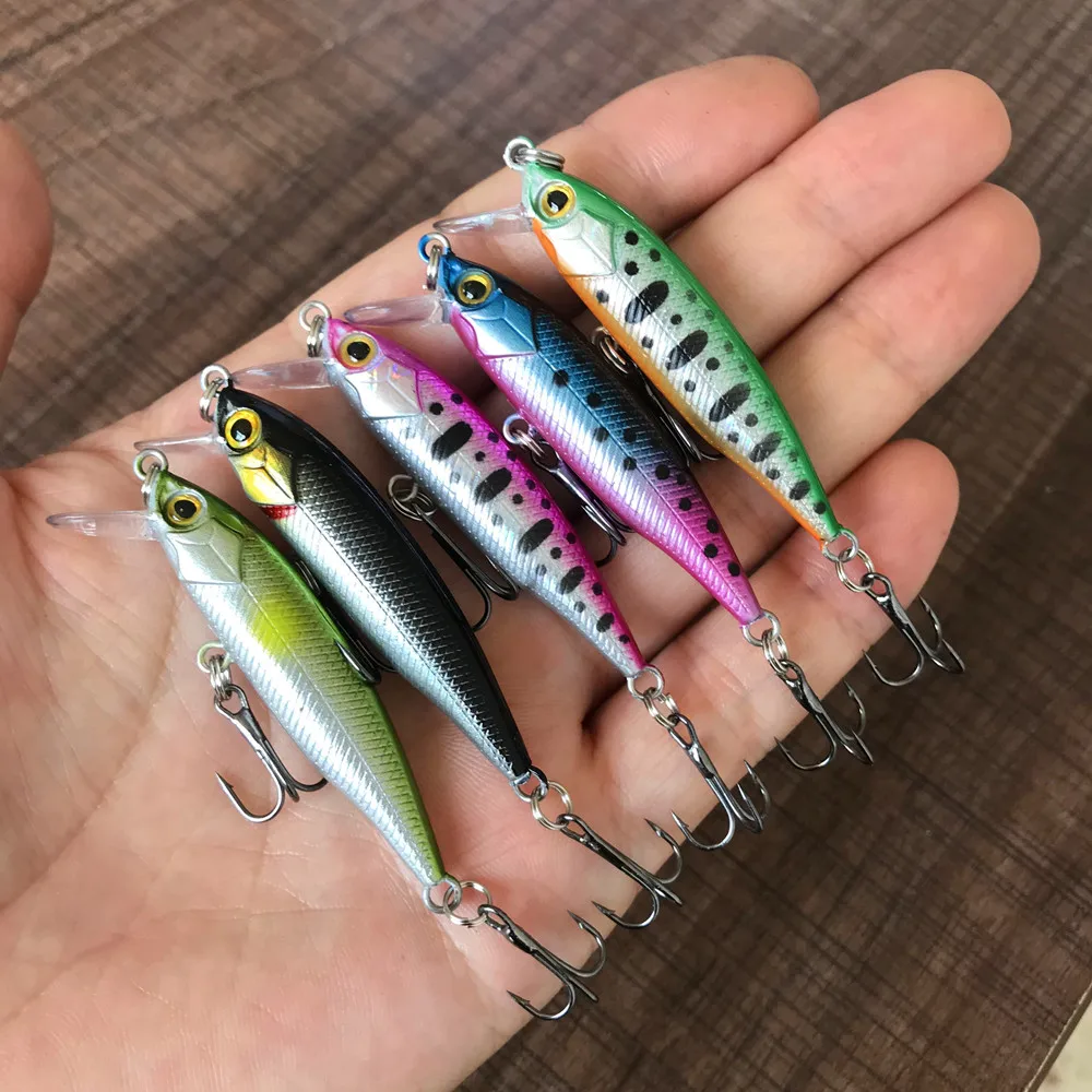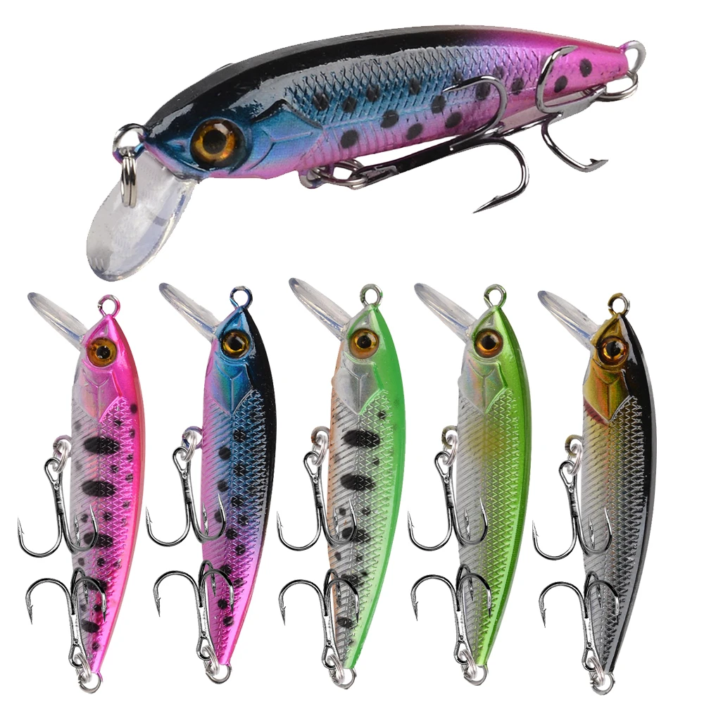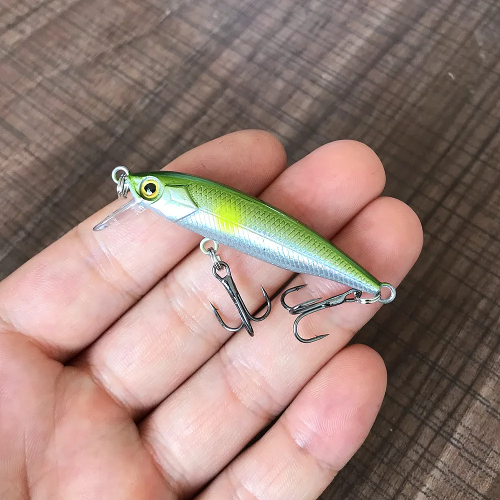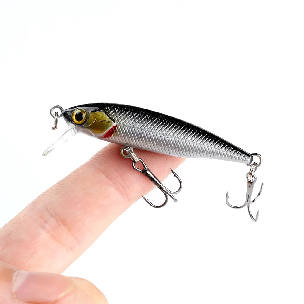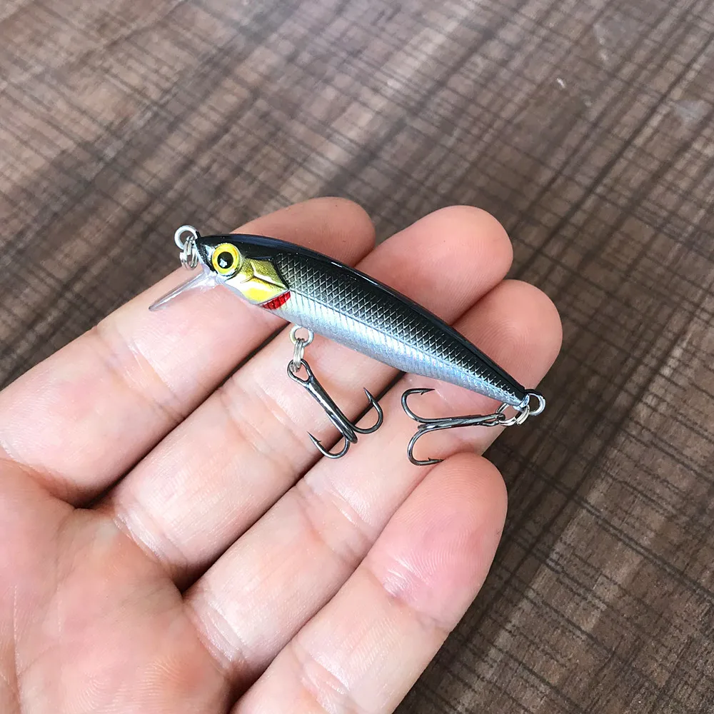 Señuelo de pesca de pececillo que se hunde, cebo duro Artificial de plástico, ojos 3D, Crankbait, Lucio, trucha, aparejos de pesca, 55mm, 3,2g, 1 unidad
