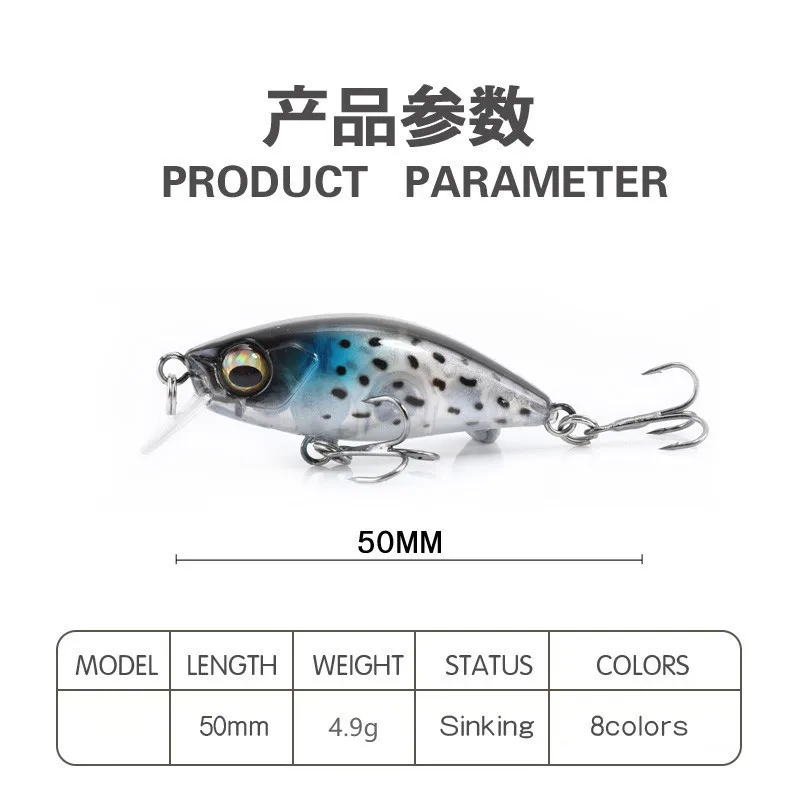 Señuelo de pesca de pececillo que se hunde, Mini cebo duro Artificial, anzuelo afilado, Lucio, lubina, Crankbait, Wobblers, aparejos de pesca de trucha, 5cm, 4,9g, 1 unidad