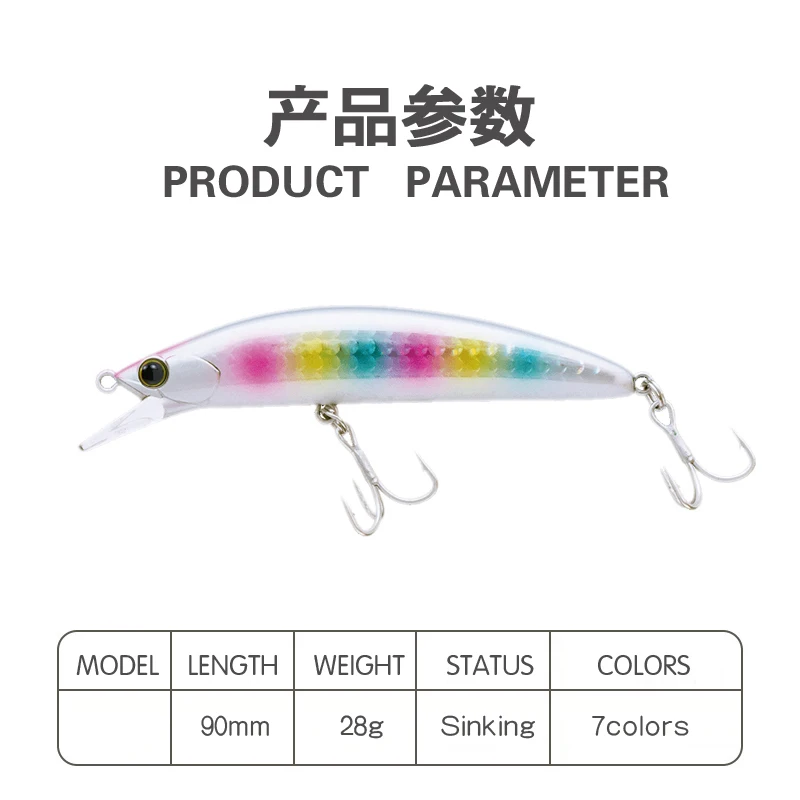 Señuelo de pesca de pececillo de surfista pesado, 90MM, 28G, hundimiento, cebo Artificial, cebo duro de agua salada, aparejos de pesca de lubina, 2021