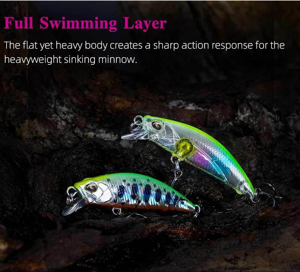 El cuerpo plano pero pesado con énfasis en morder en el agua y un diseño de peso fijo plano y bajo en el centro de gravedad proporciona un excelente rendimiento de natación para las corrientes principales fuertes y rápidas.