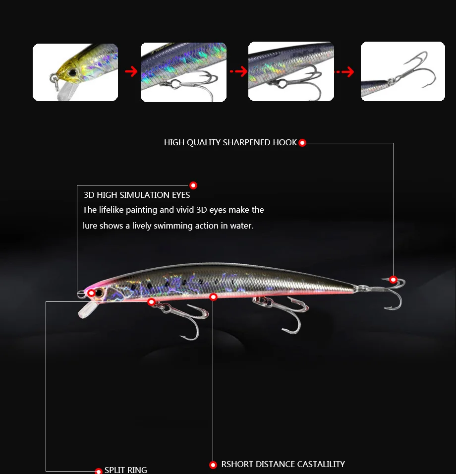 Señuelo de pesca de pececillos biónicos 3D, 1 unidad, 125mm, 14,6g, capa de natación completa, cebo duro con 3 ganchos, señuelo de aparejos de pesca, ojos 3D
