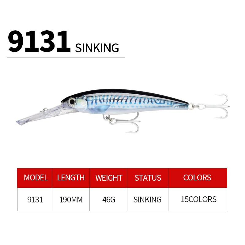 Señuelo de Pesca de pececillos para buceo profundo, cebo Artificial duro, ojos 3D, Wobblers para Pesca de atún, aparejos de Pesca, 19cm, 46g