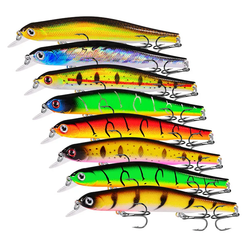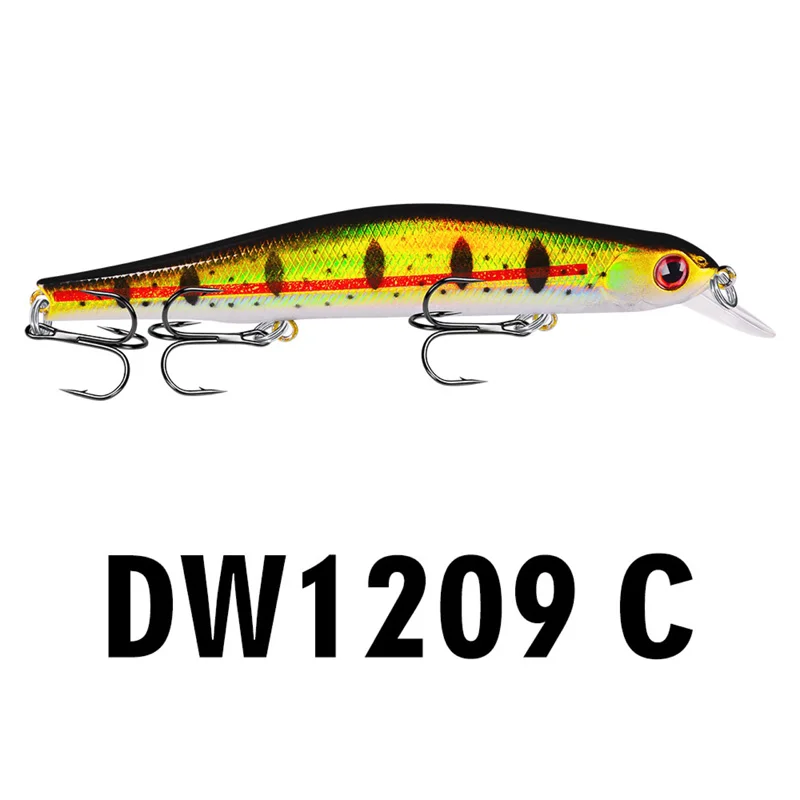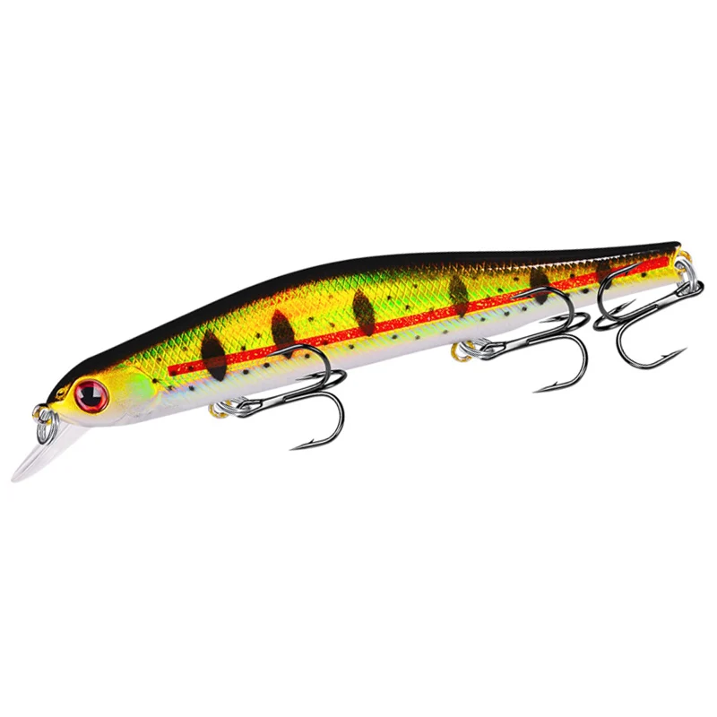 Tipo: señuelo de pesca MinnowPeso: 17,5GLongitud: 125MMProfundidad de buceo: hundimientoGanchos: equipados con 2 ganchos de calidadAnillos: bicíclicosColor: 8 colores diferentesPez diana: chub pálido, bajo, Pikes, carpa Yellowcheck, perca china, culter TopmouthLista de paquetes:1 señuelo de Pesca,
