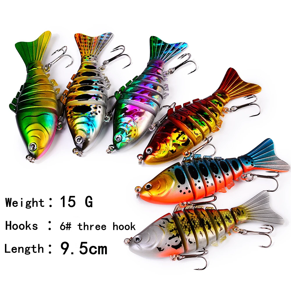 Señuelo de pesca piezas, cebo duro Wobblers Minnow, aparejos para lubina y carpa, secciones articuladas múltiples, 9,5 cm, 15g, 1 unidad