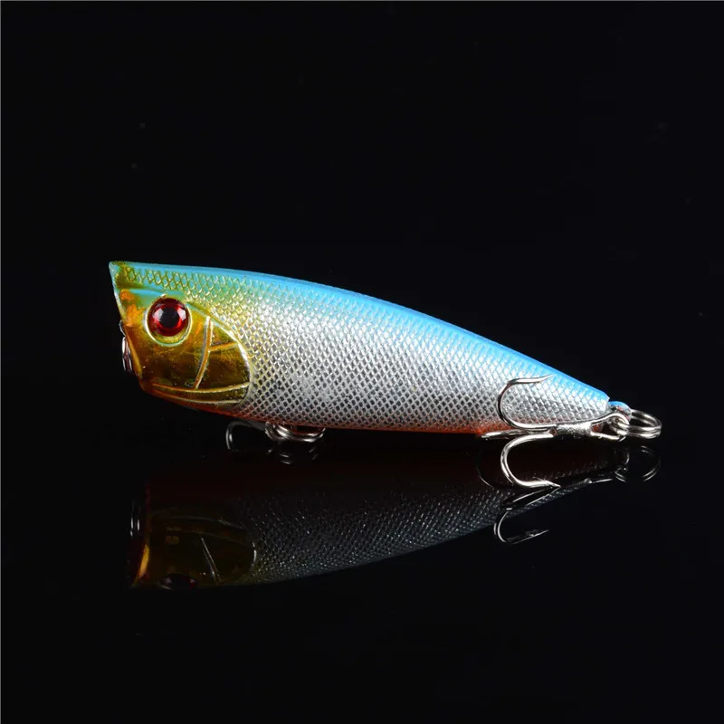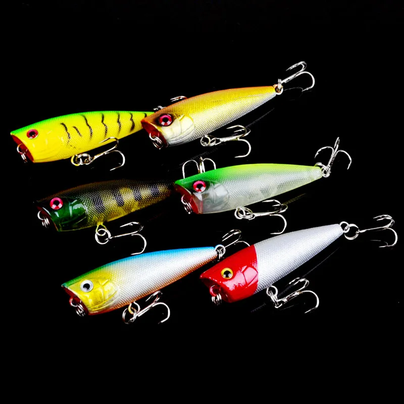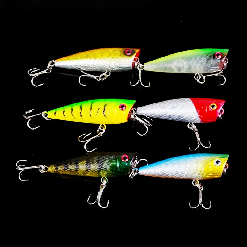 Detalles del producto Marca: MingYan Modelo de señuelo: señuelo Popper Tipo de señuelo: señuelo de pesca duro Peso del señuelo: 7g Longitud del señuelo: 6cm Profundidad de buceo: 0m Flotabilidad: Topwater Anzuelos: anzuelos triples de acero de alto carbono para natación Ojos: ojos de pez 3D Material: ABS Colores: 6 colores