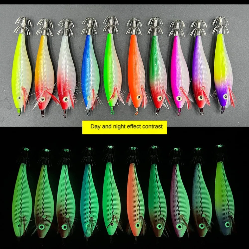 (1)Squid jig full body luminous effect better than other squid lighting and more easy to attract fish in the dark.