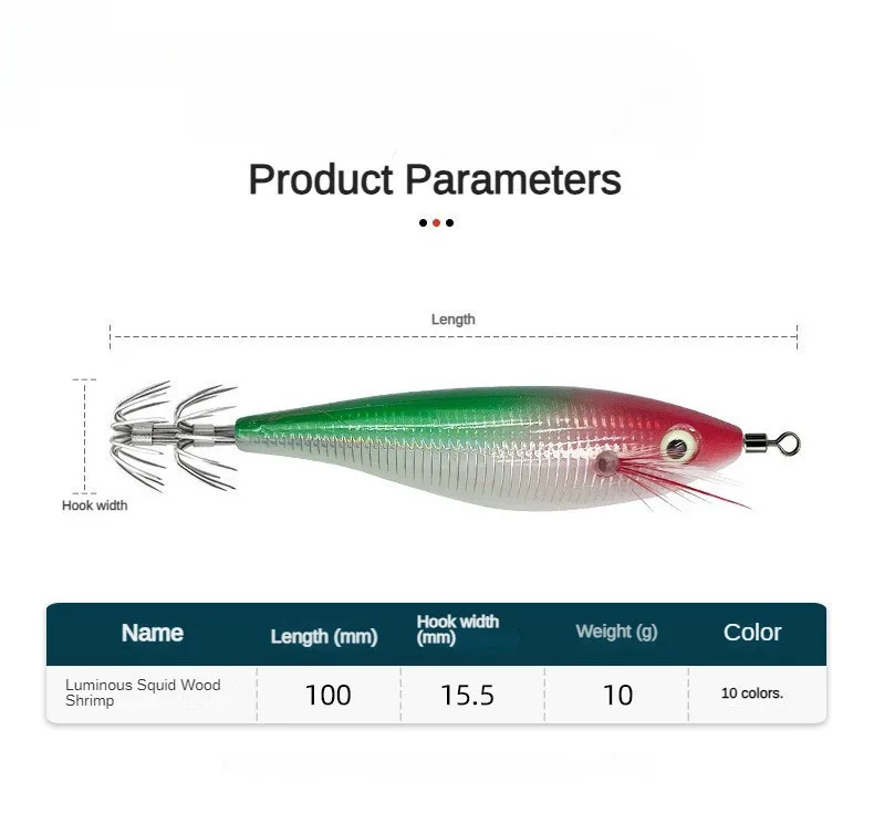 (5) The shrimp body is colorful and bright, with a fluorescent coating on the head and tail and attracts fish to catch the bait, day and night. Ideal for squid, octopus and cuttlefish.