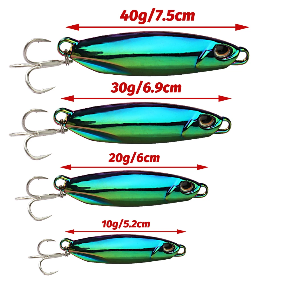 • Variedad de tamaños:Disponible en cuatro tamaños diferentes (10g, 20G, 30g, 40g), este señuelo se puede utilizar en diversos entornos de pesca, lo que le permite adaptarse a las condiciones cambiantes.
